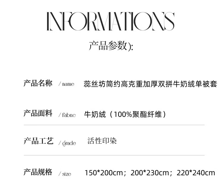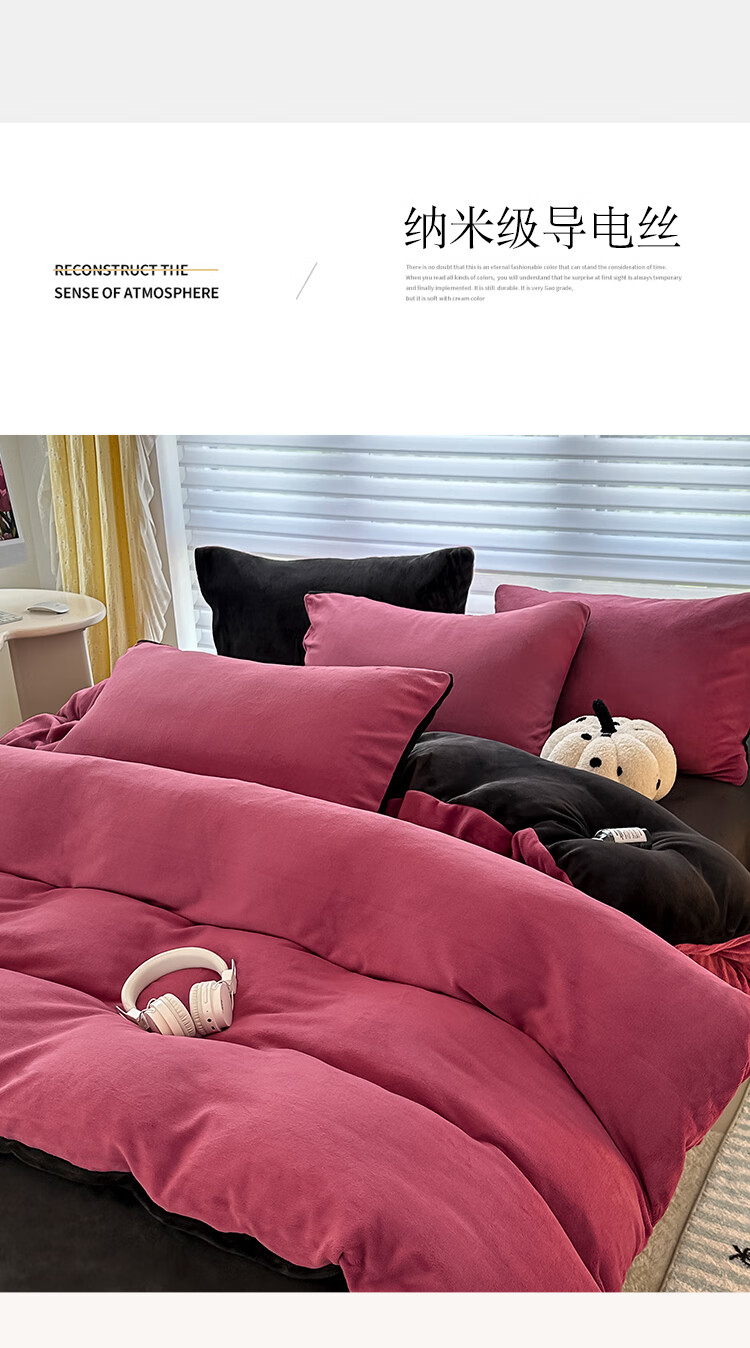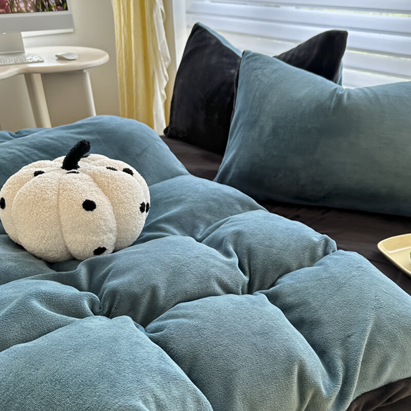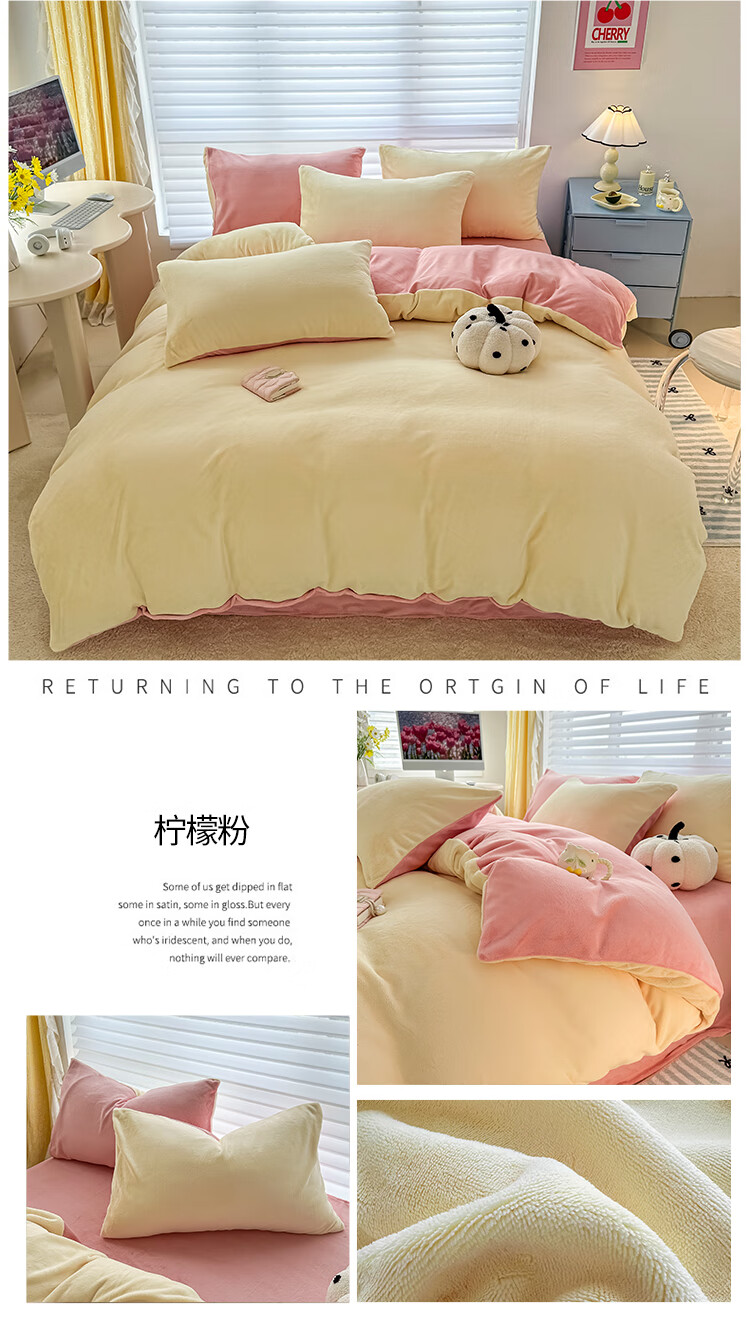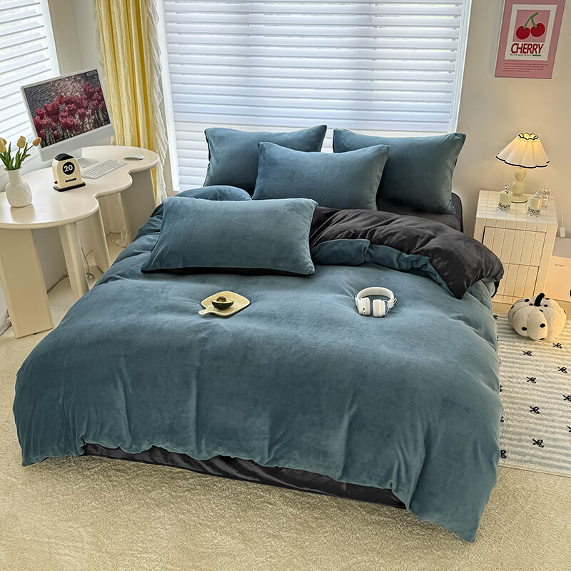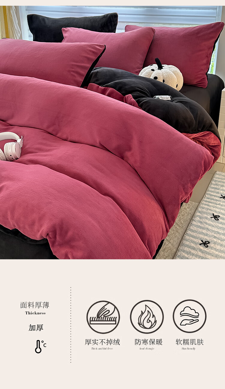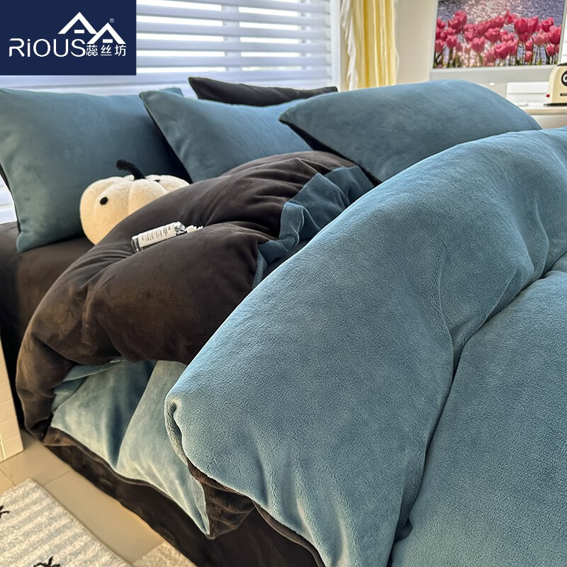 蕊丝坊 简约高克重加厚双拼牛奶绒四件套