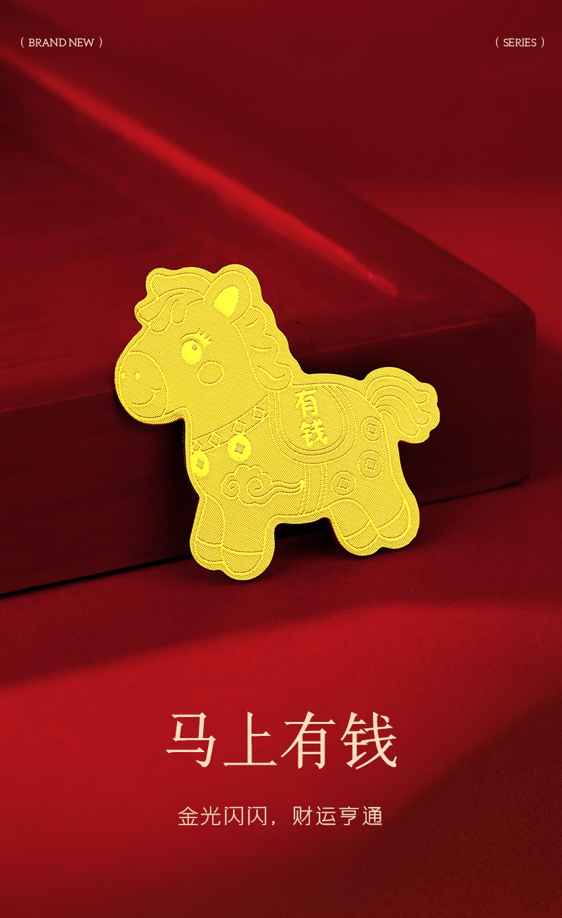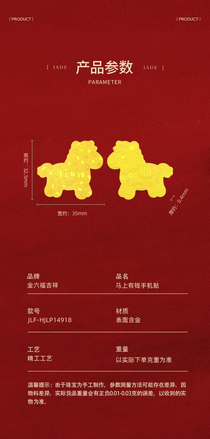 金六福吉祥 足金生肖马上有钱手机贴JLF-HJLP14918