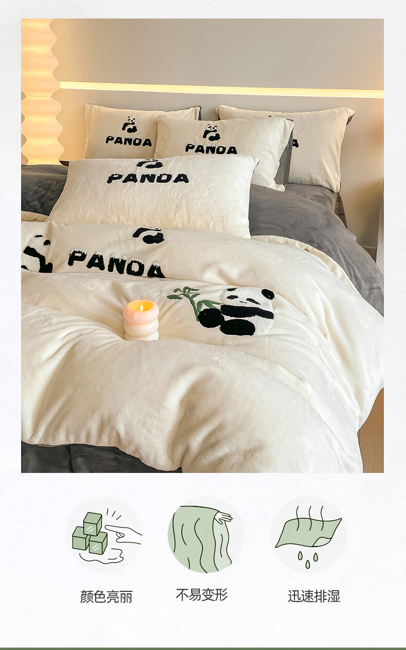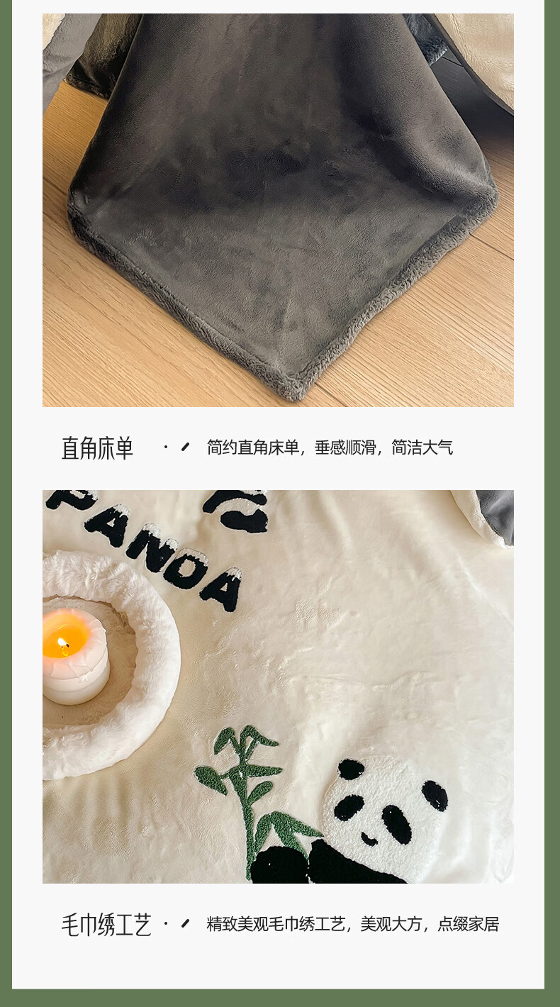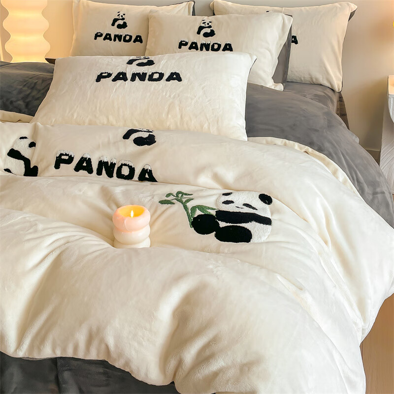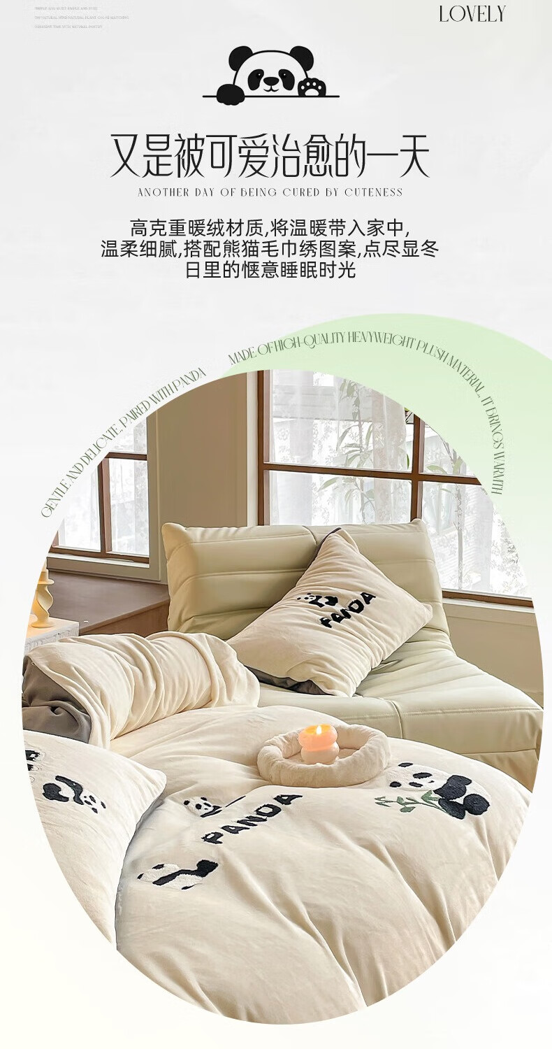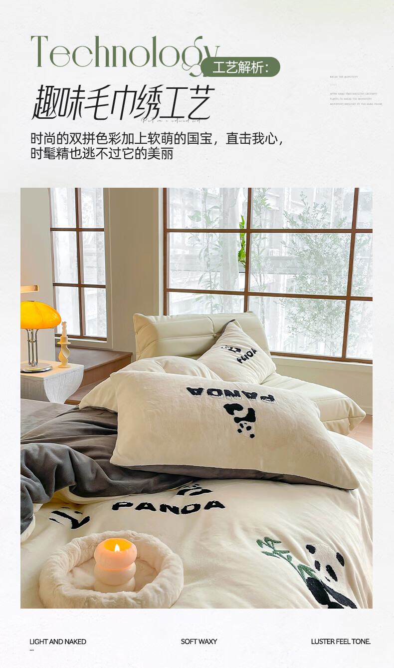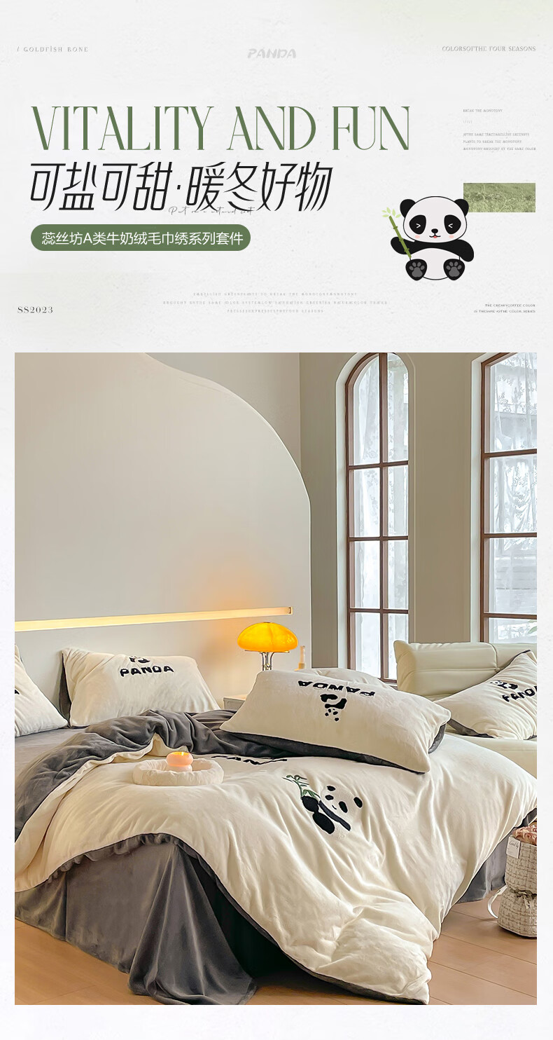 蕊丝坊 牛奶绒熊猫宝宝毛巾绣床单四件套