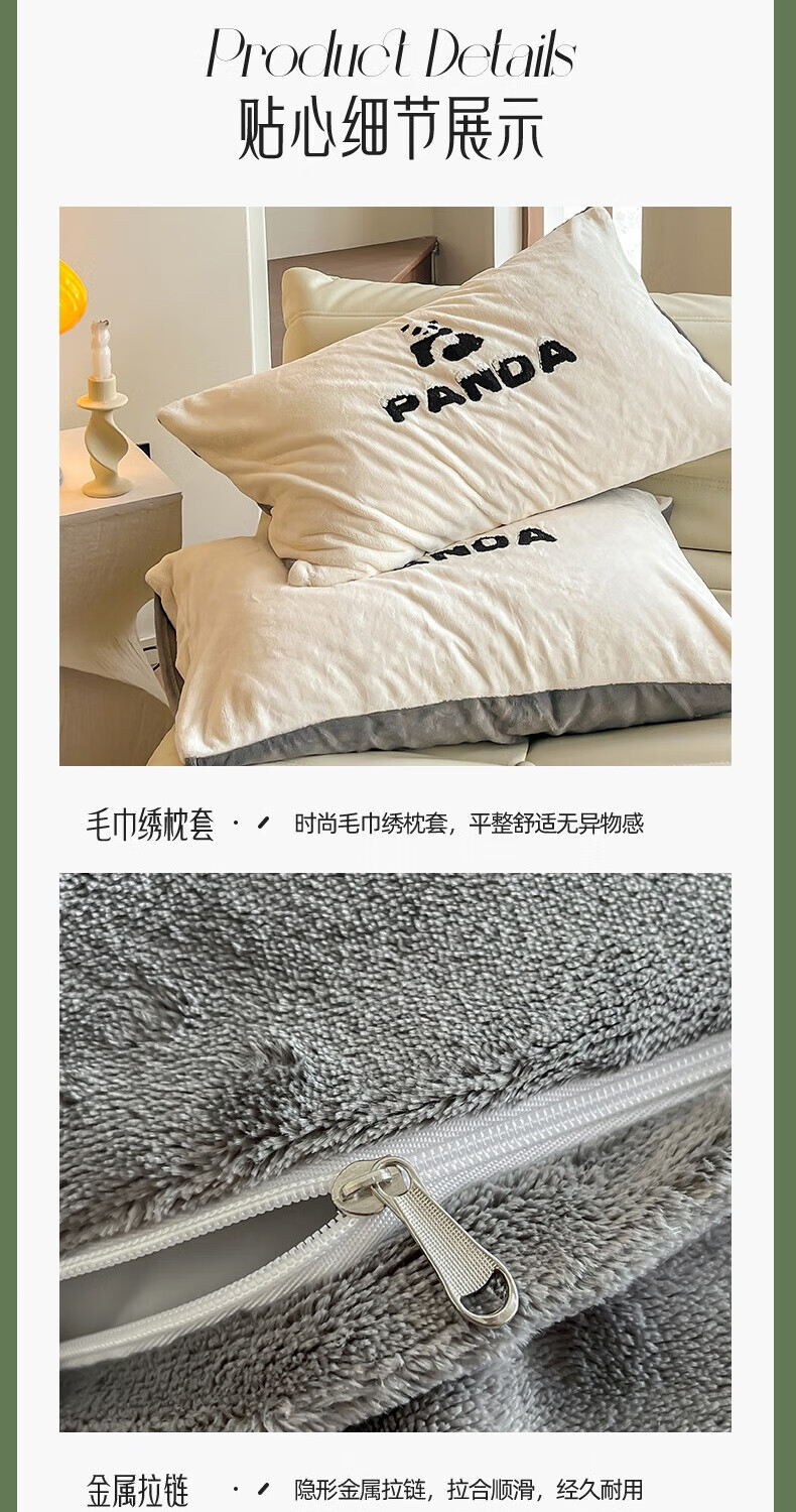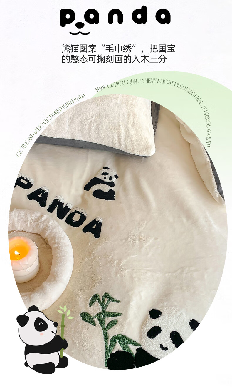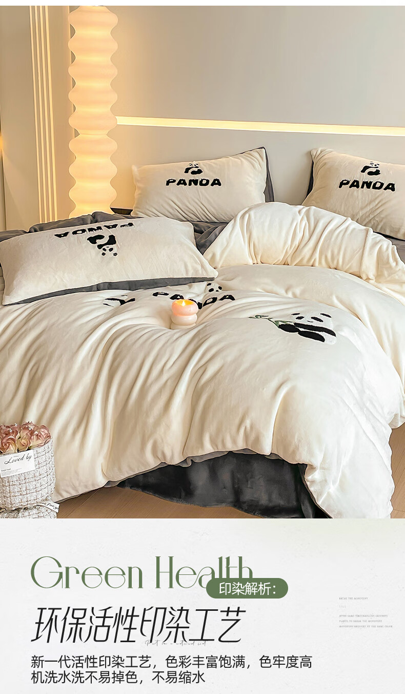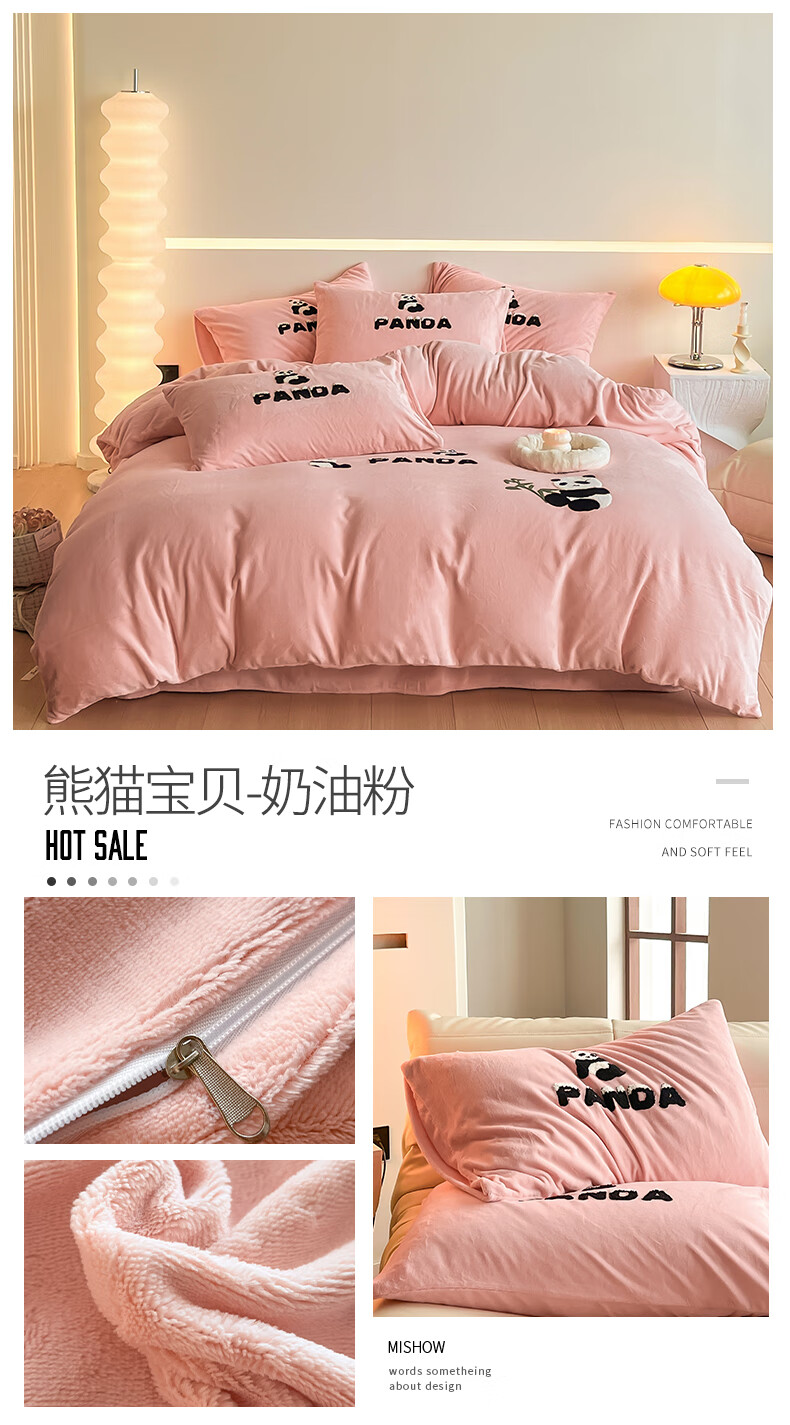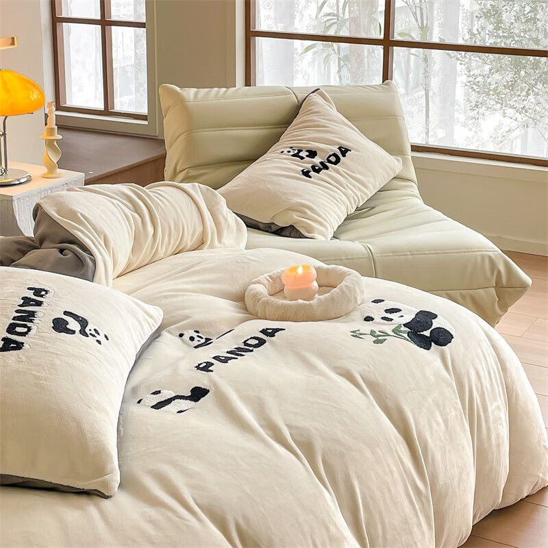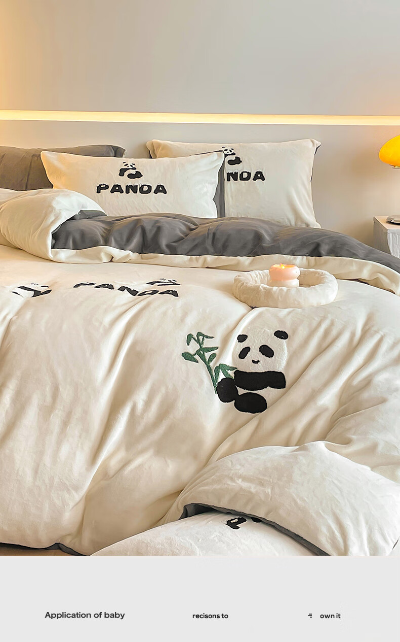 蕊丝坊 牛奶绒熊猫宝宝毛巾绣床单四件套