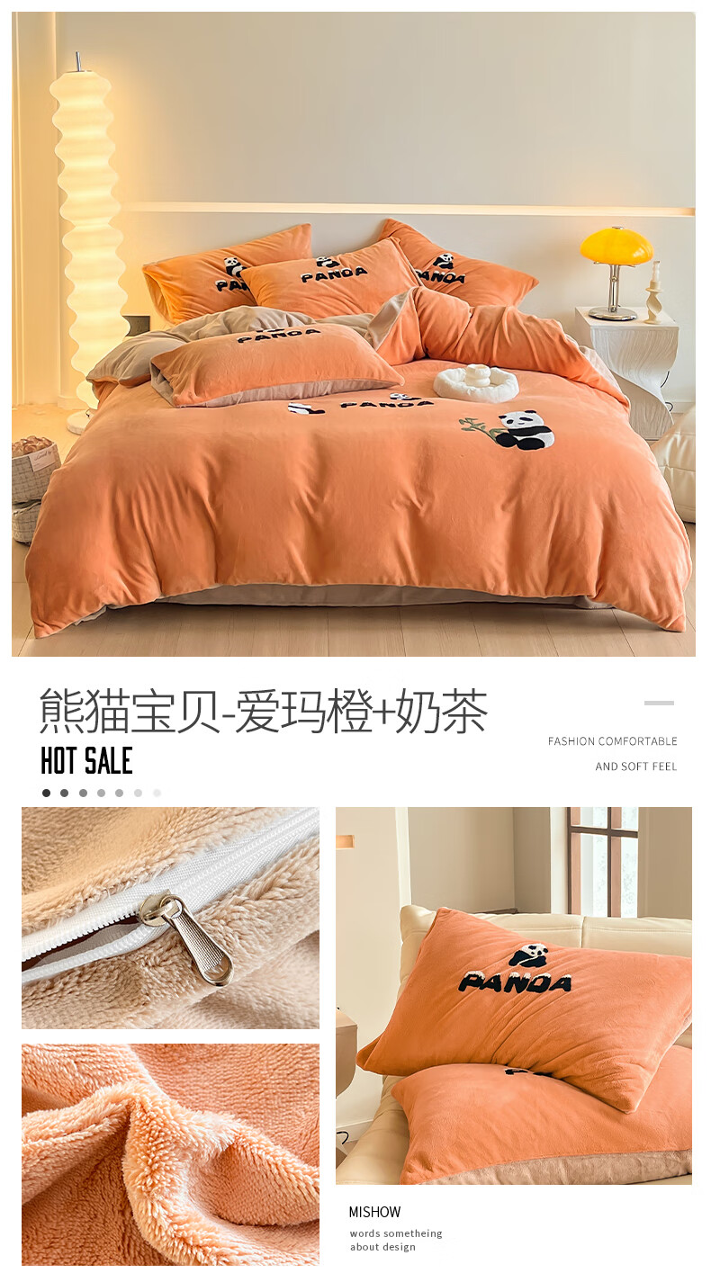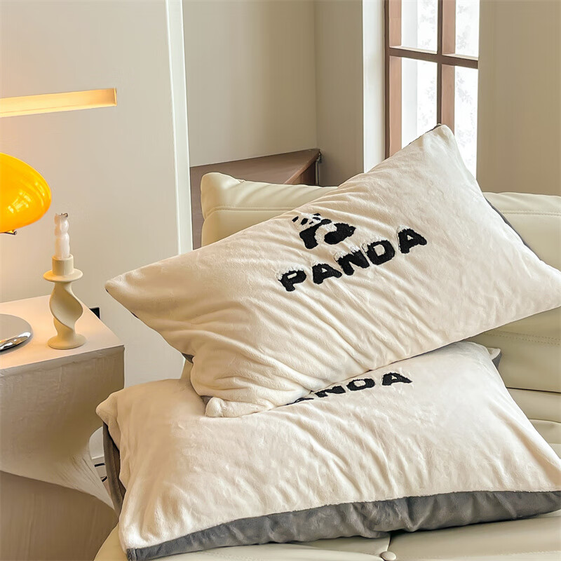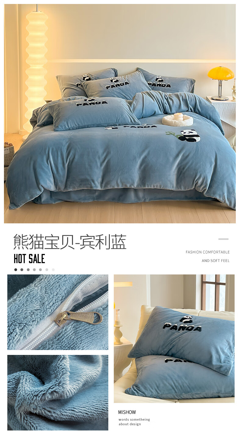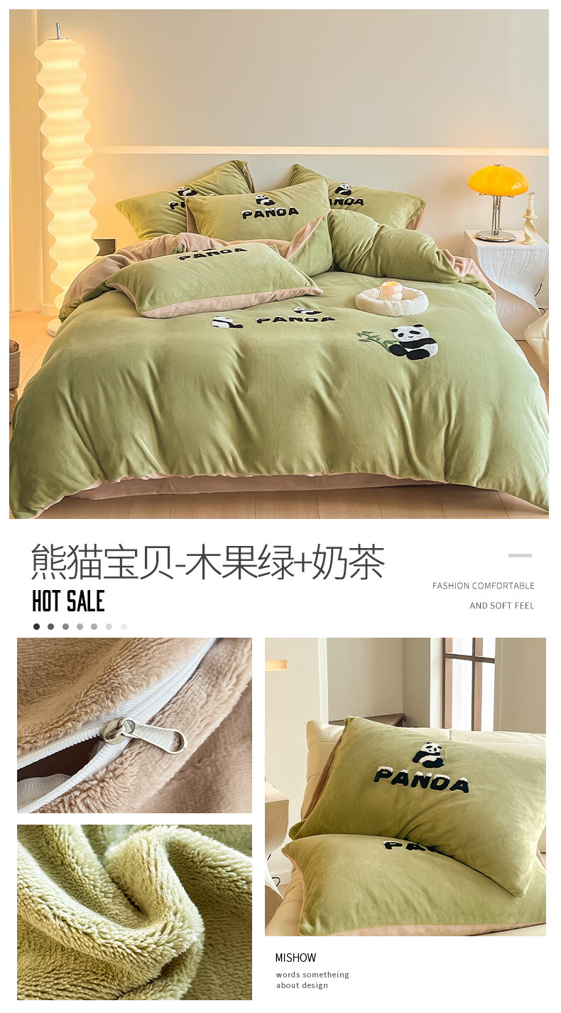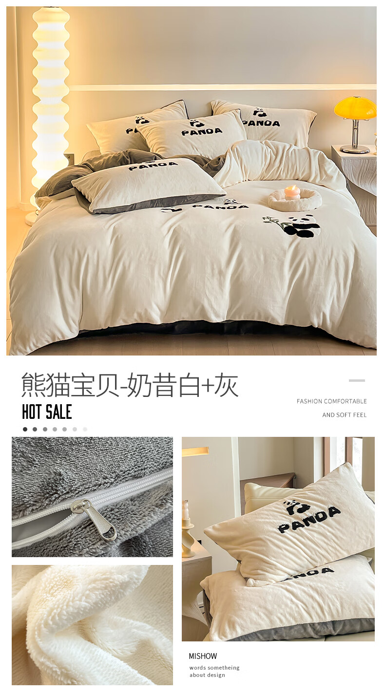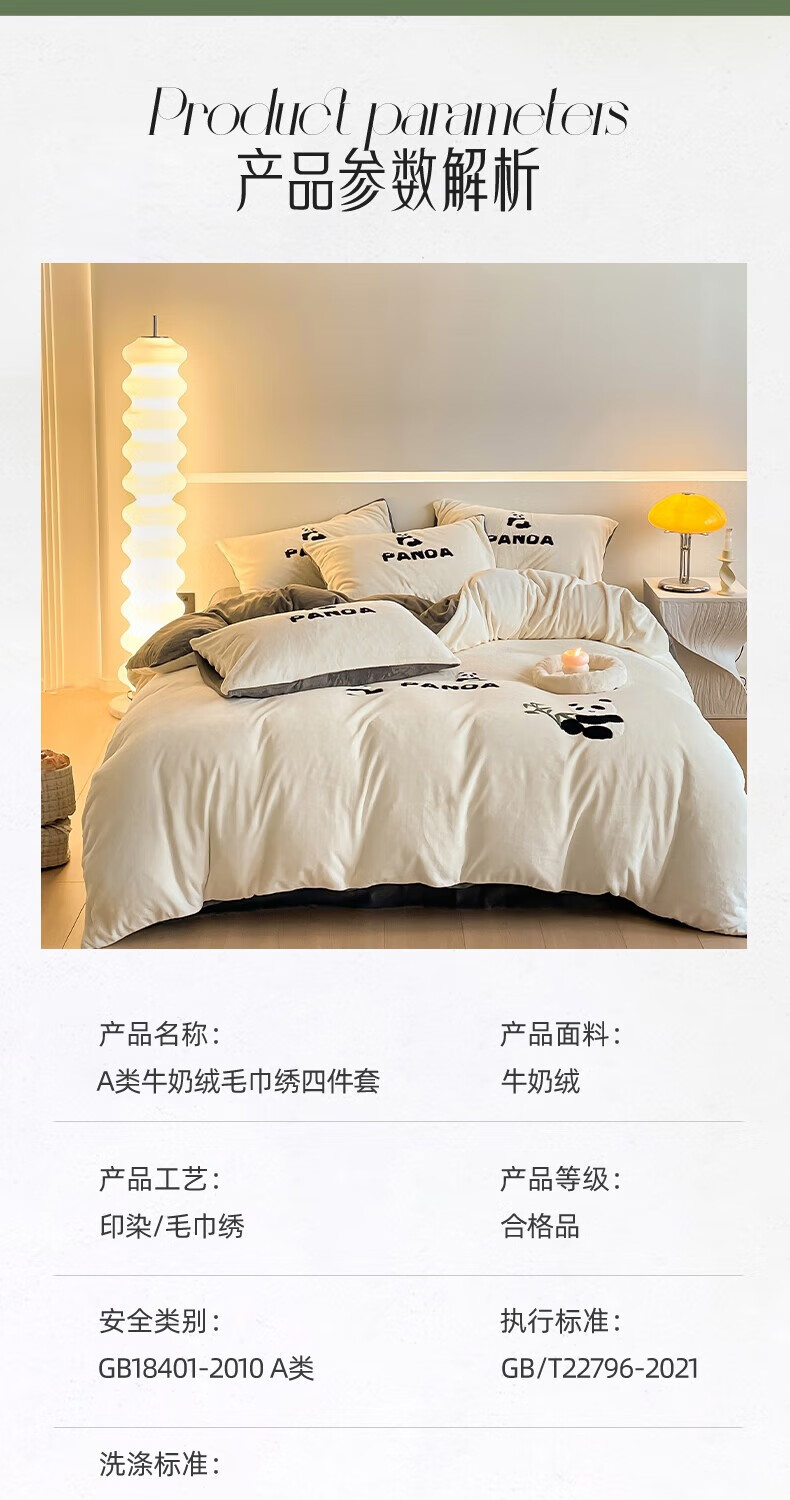 蕊丝坊 牛奶绒熊猫宝宝毛巾绣床单四件套