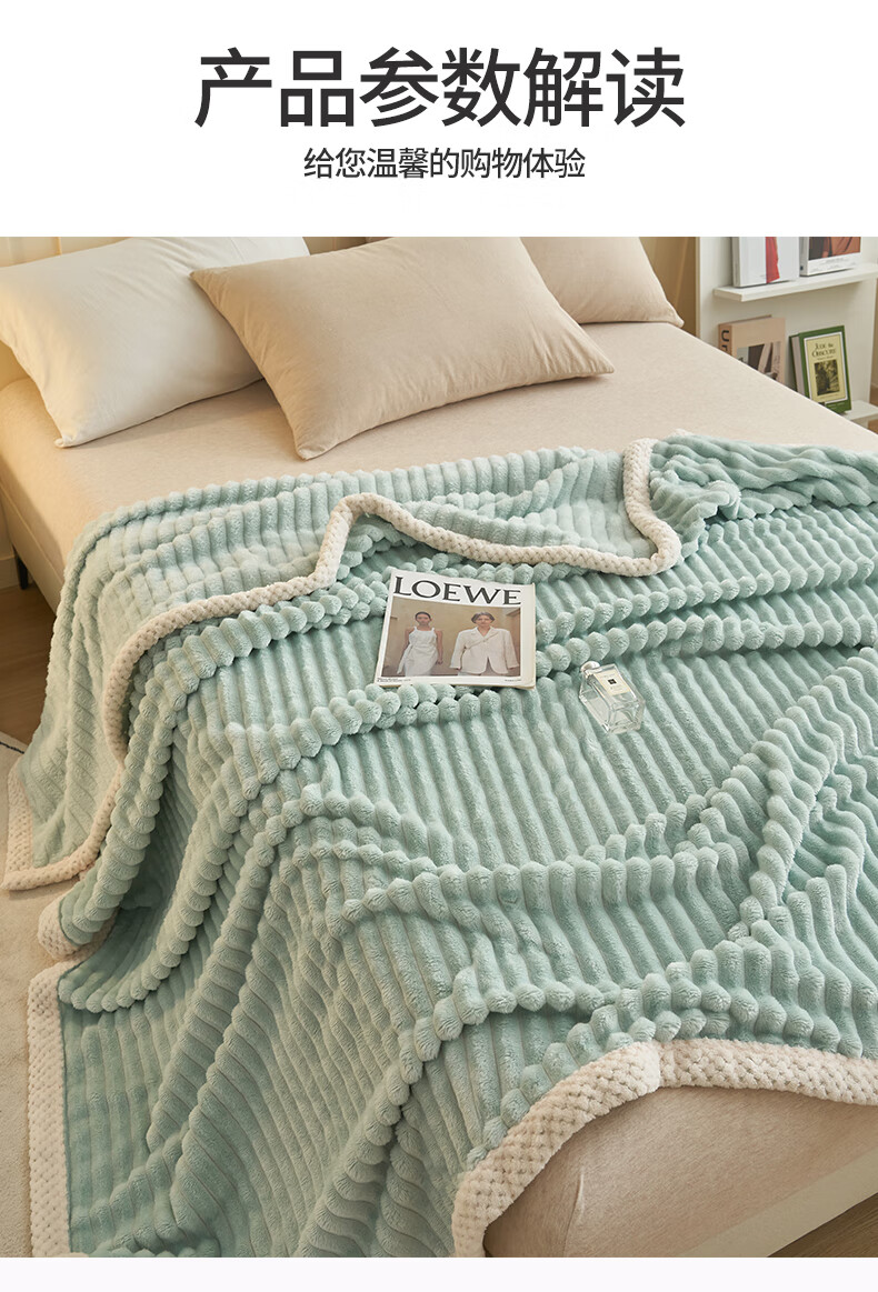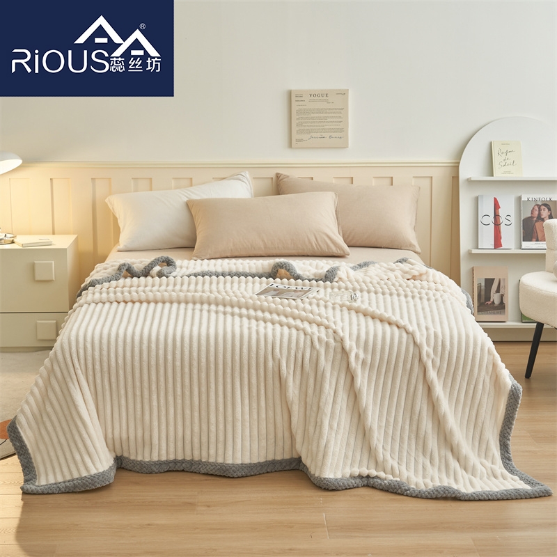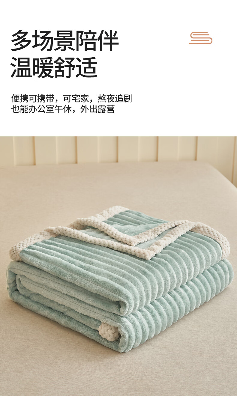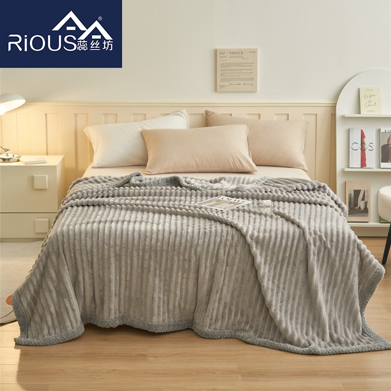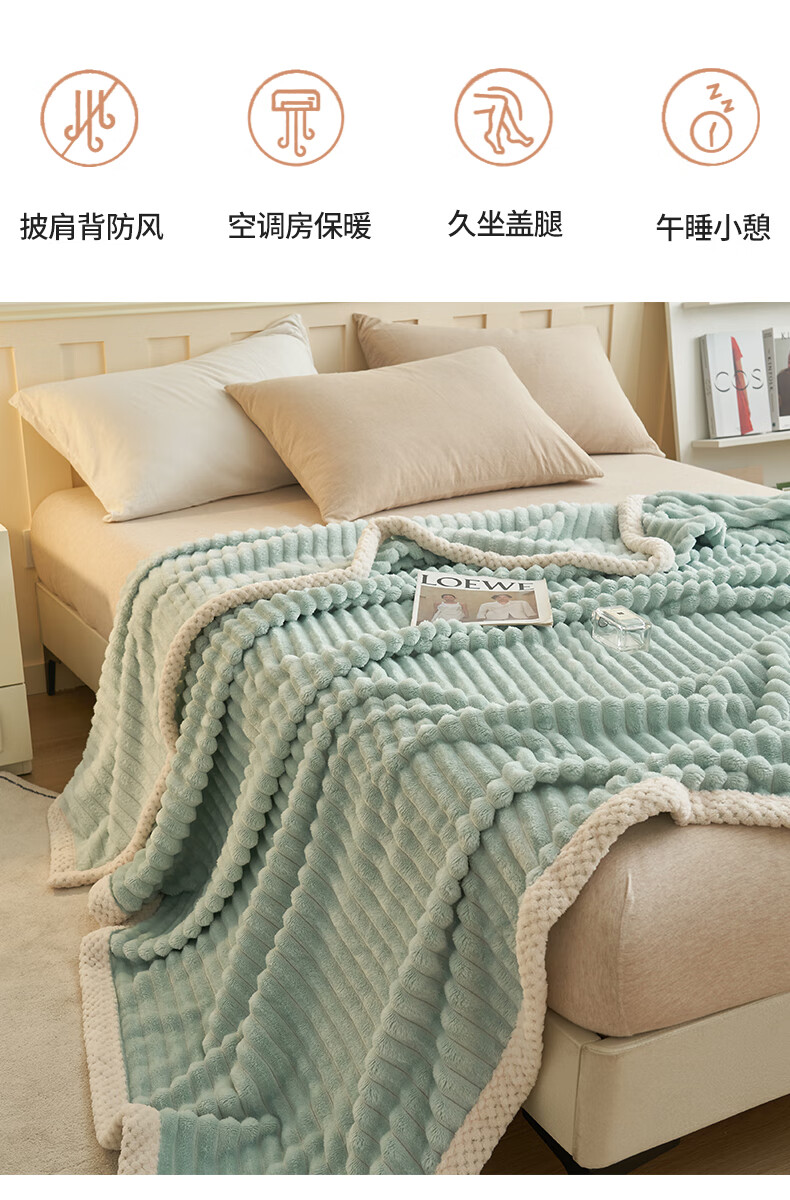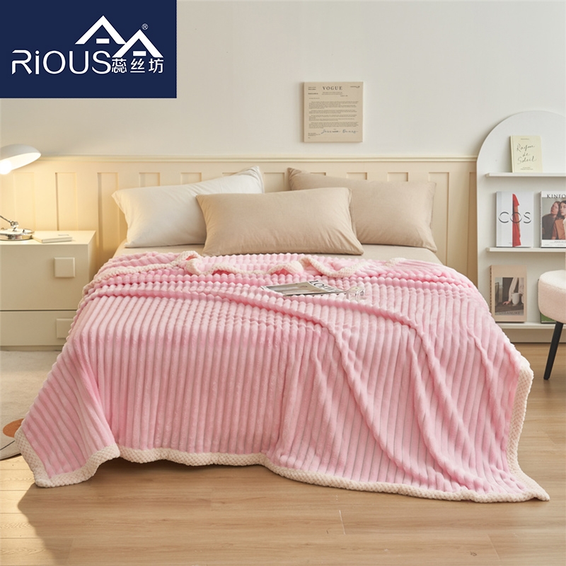 蕊丝坊 抽条牛奶绒午睡休闲毛毯加厚保暖