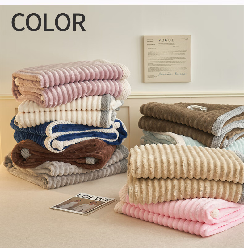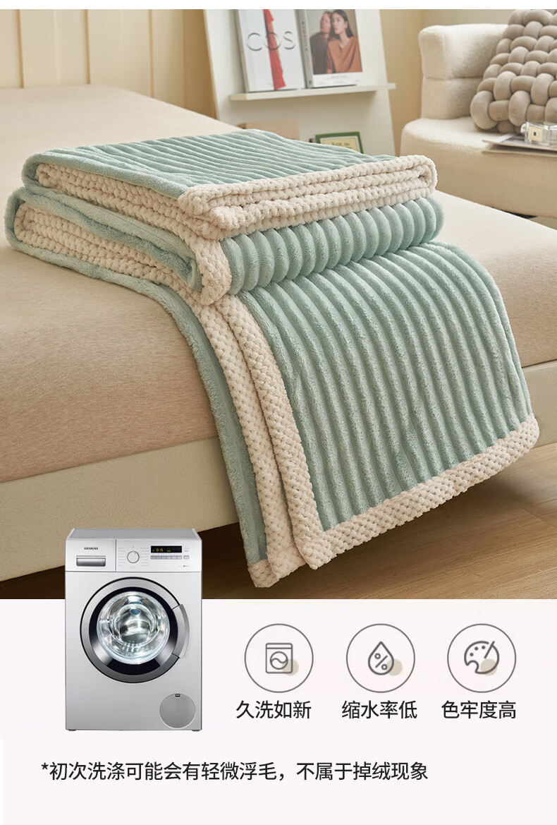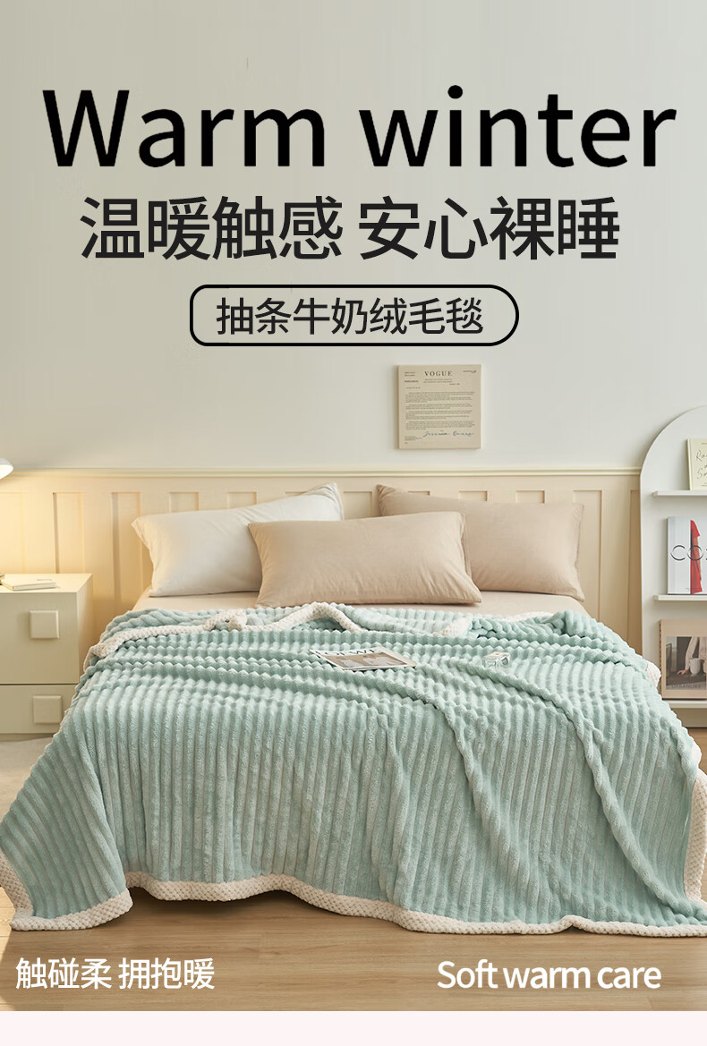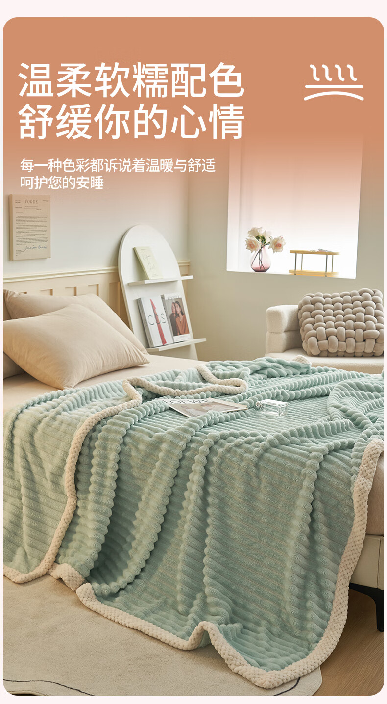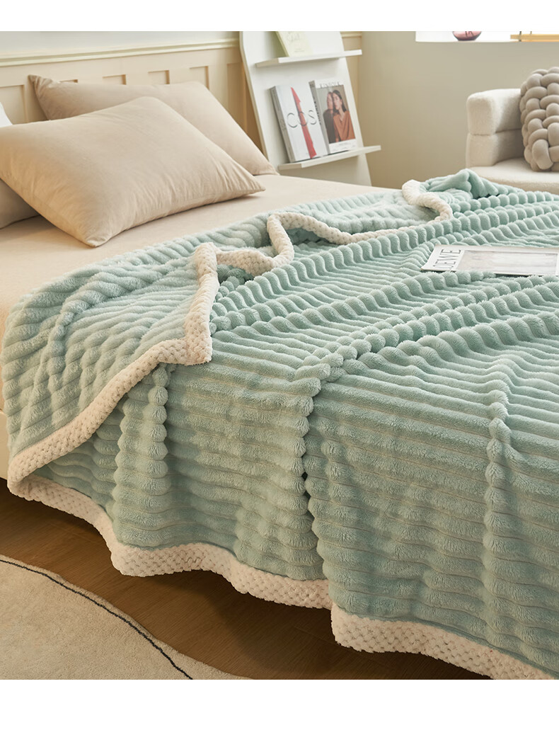 蕊丝坊 抽条牛奶绒午睡休闲毛毯加厚保暖