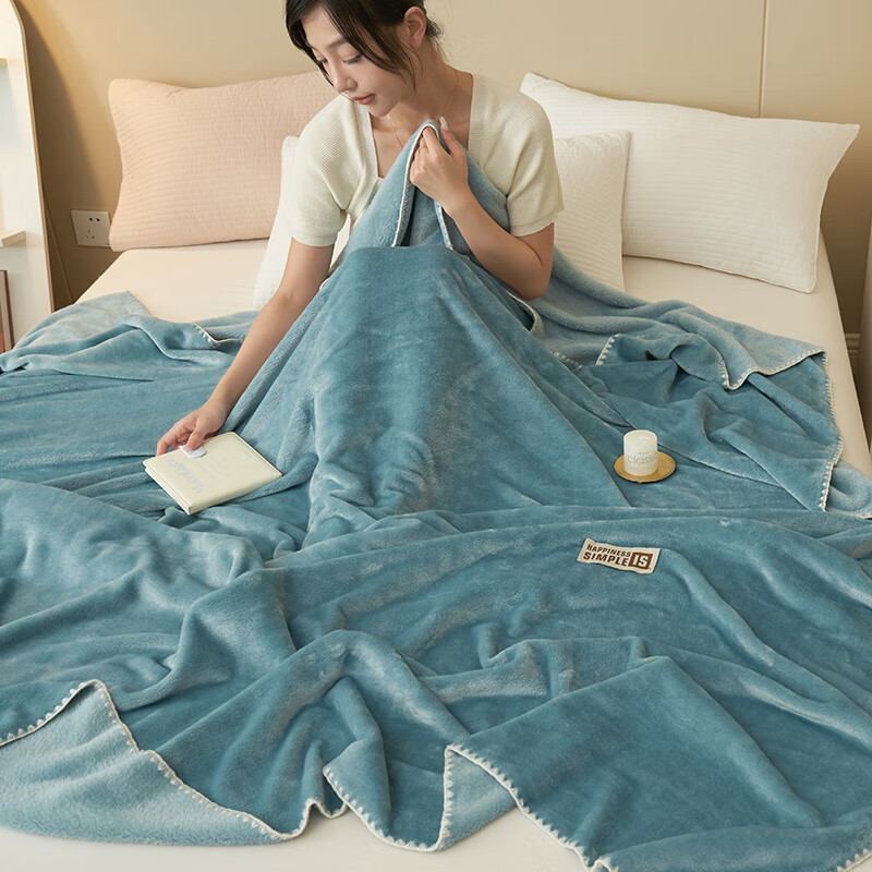 蕊丝坊 牛奶绒三件针多功能毛毯冬季保暖