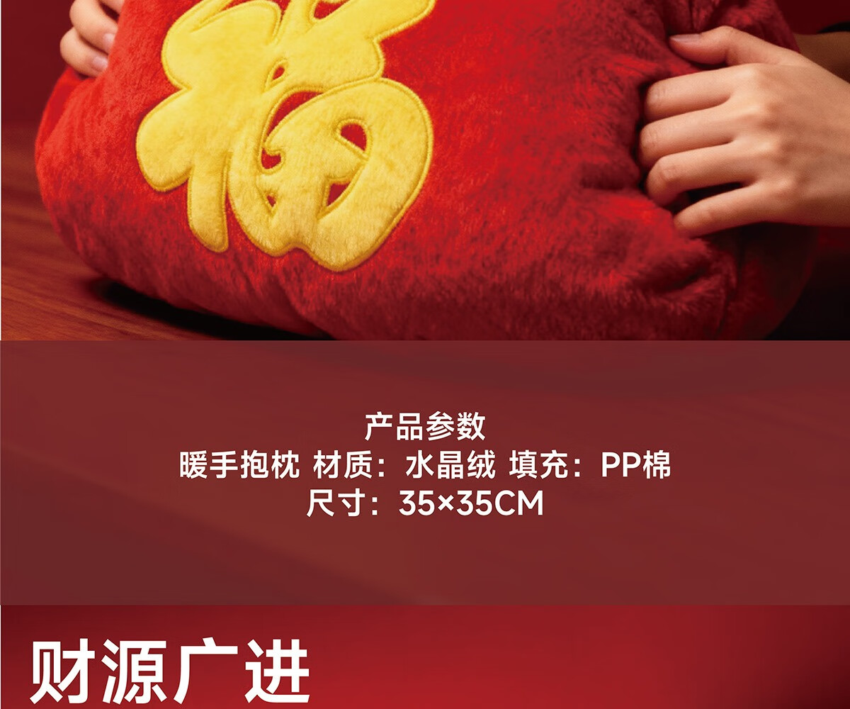 暖手枕:材质:水晶绒 填充:PP棉 尺寸:35*35CM