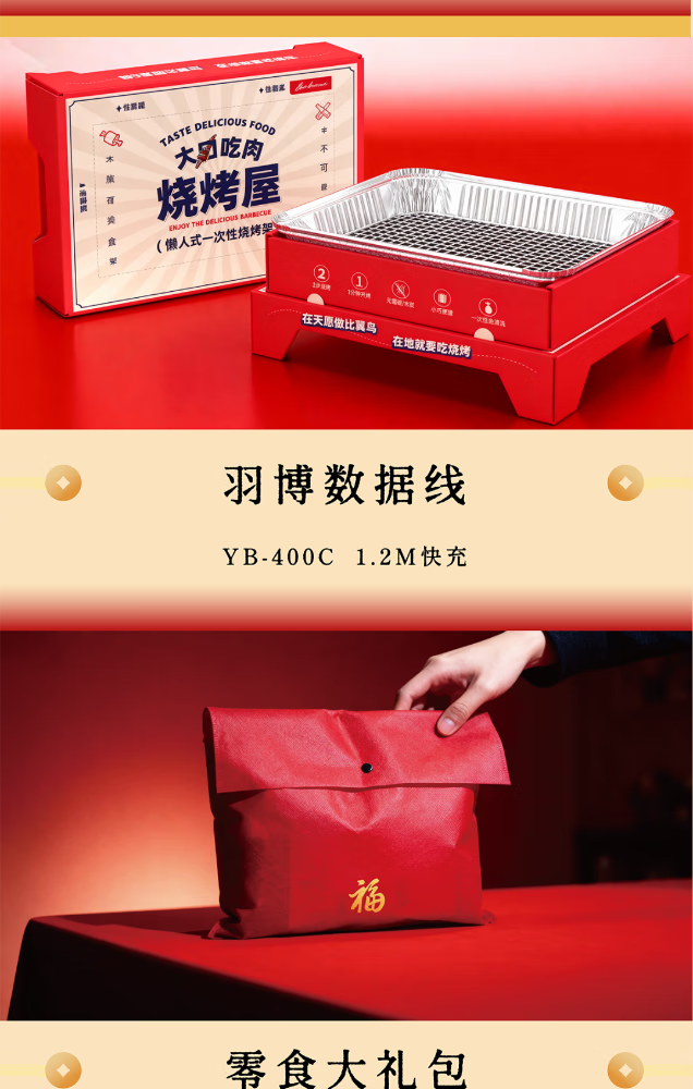 户外折叠椅:轻盈随身,一秒展开即享舒适;户外购物车:一车轻松,万向滑轮省力能装;一次性烧烤炉:即燃即烤,用完即扔省心无