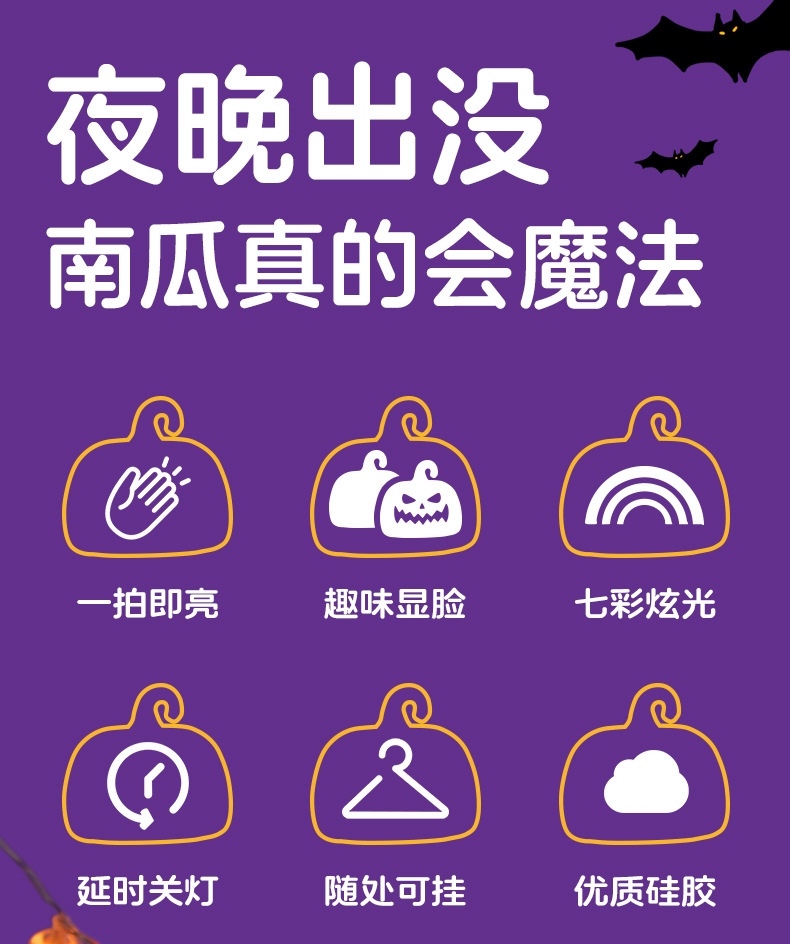 一拍即亮,七彩炫光;延时光灯,随处可挂;趣味显脸,起夜不摸黑