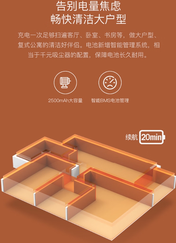 主机小于1kg;双电机系统高转速运行;2500mAh大容量,智能BMS电池管理
