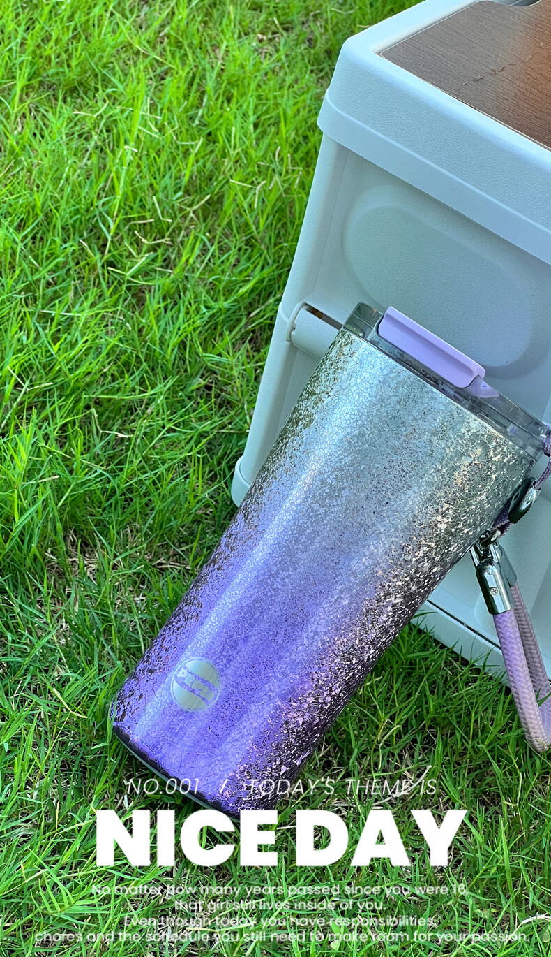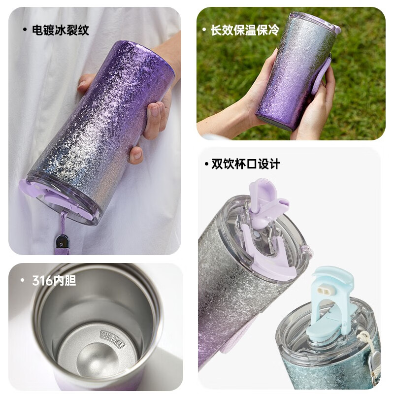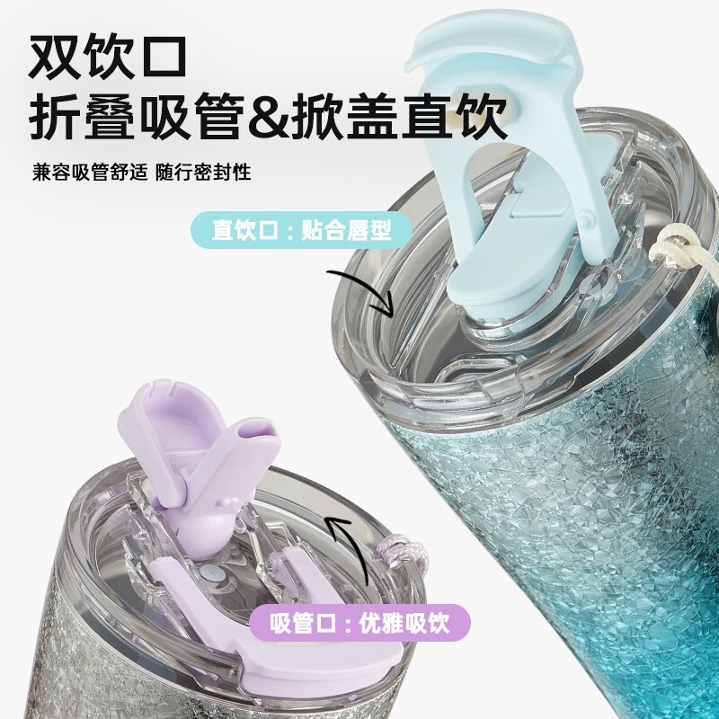 保冷保温双饮杯;电镀冰裂漆;大口径杯口