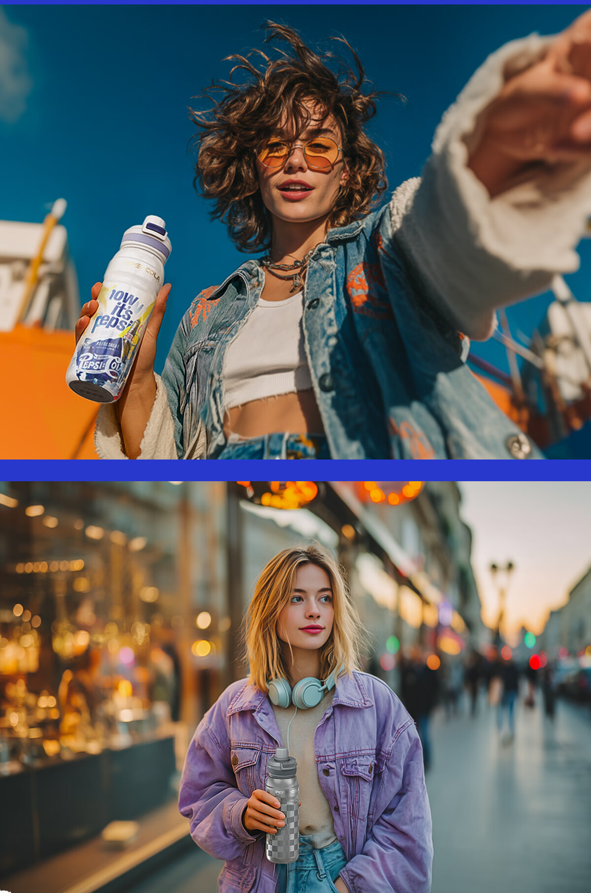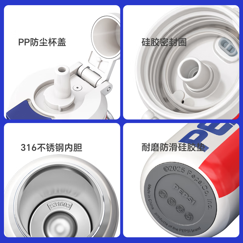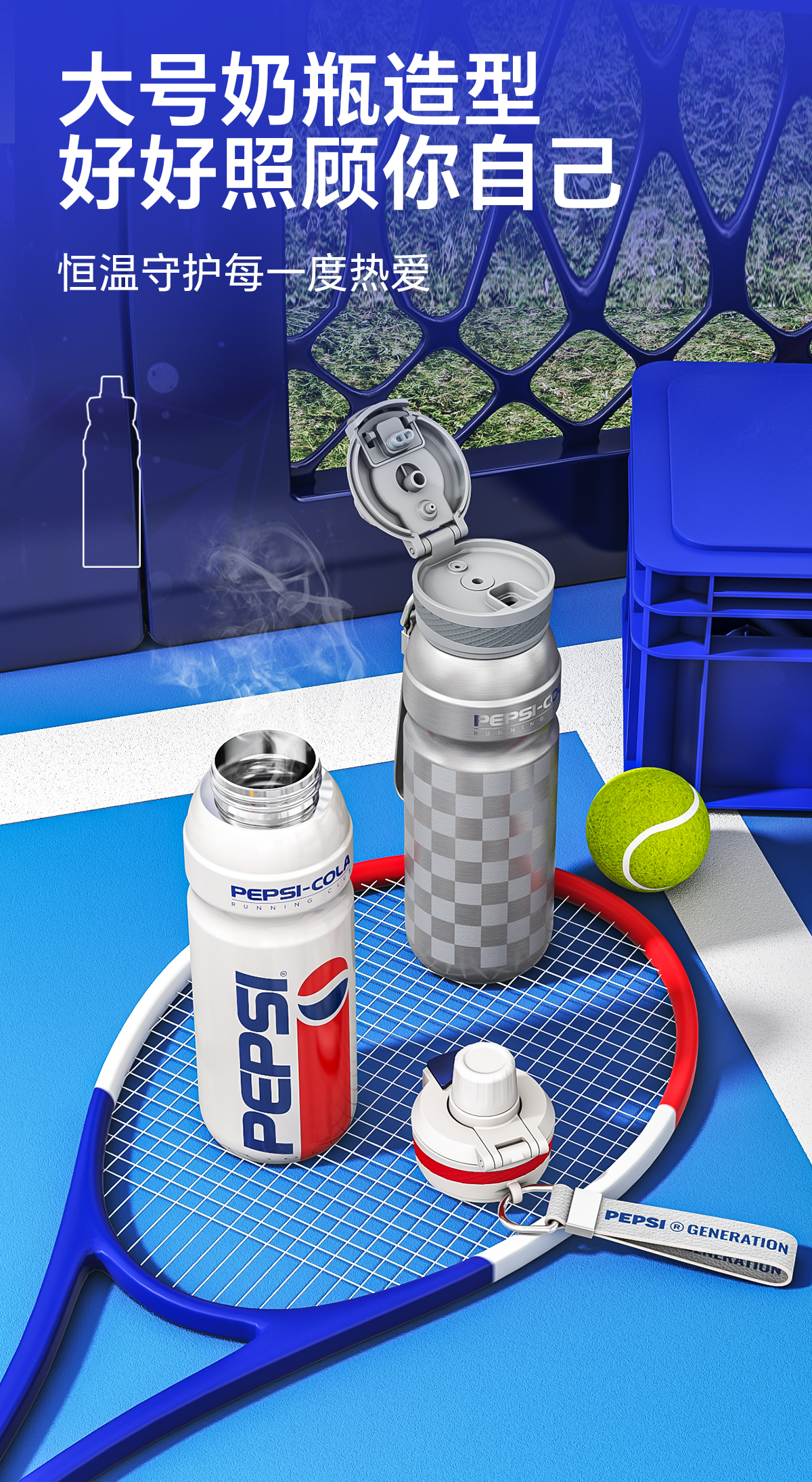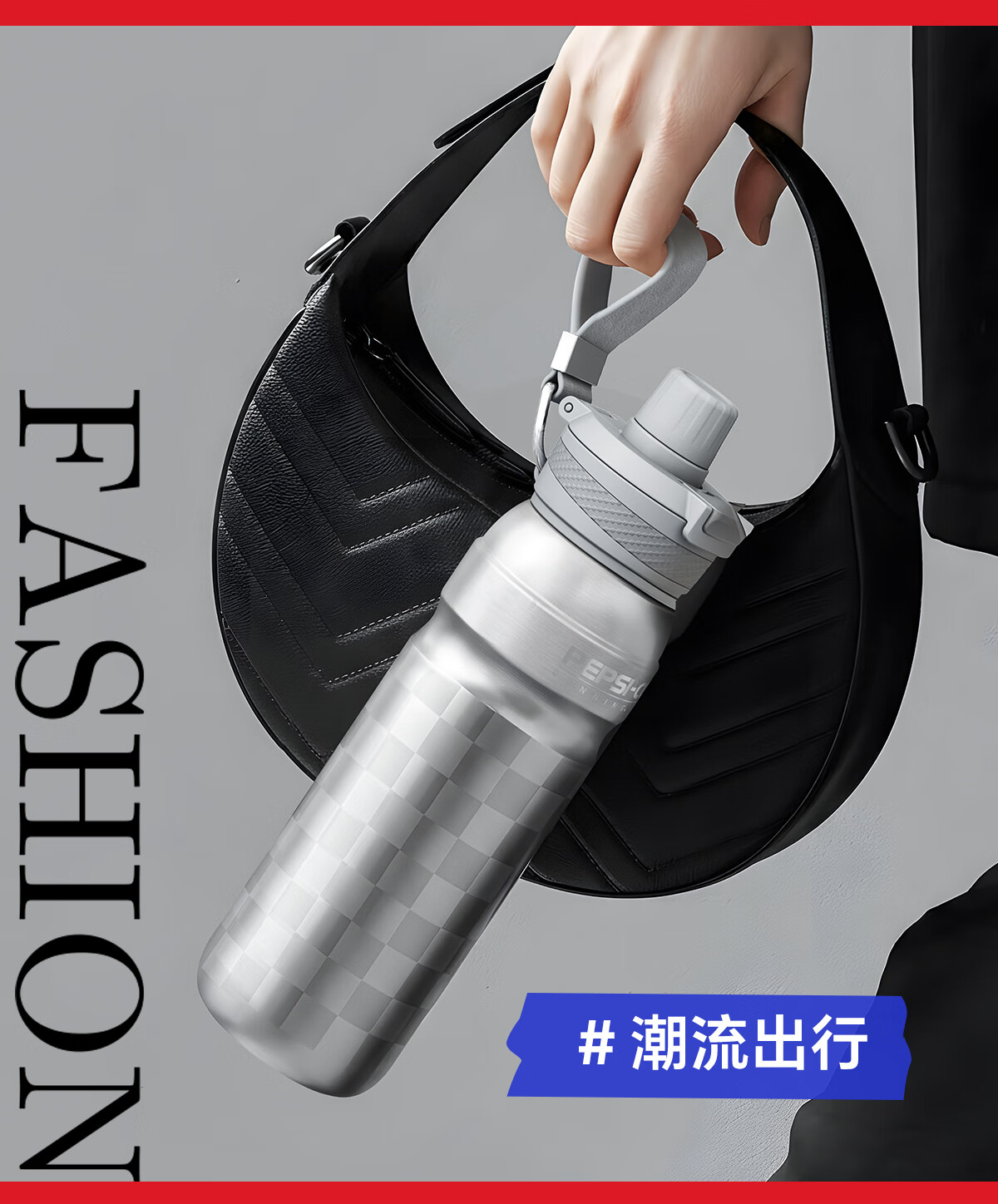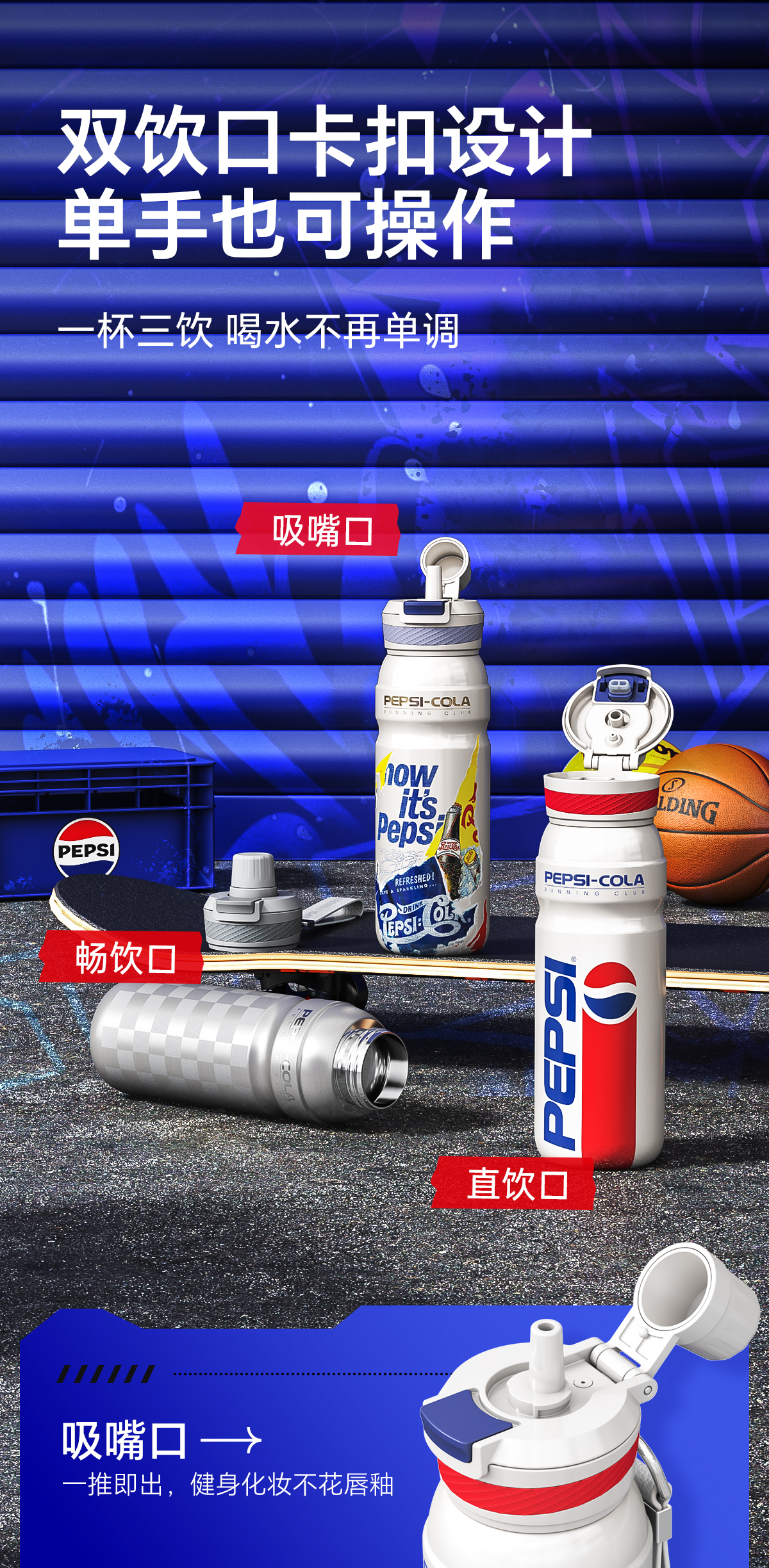 折叠弹跳双饮口;嘻哈运动风;一键开盖单手操作