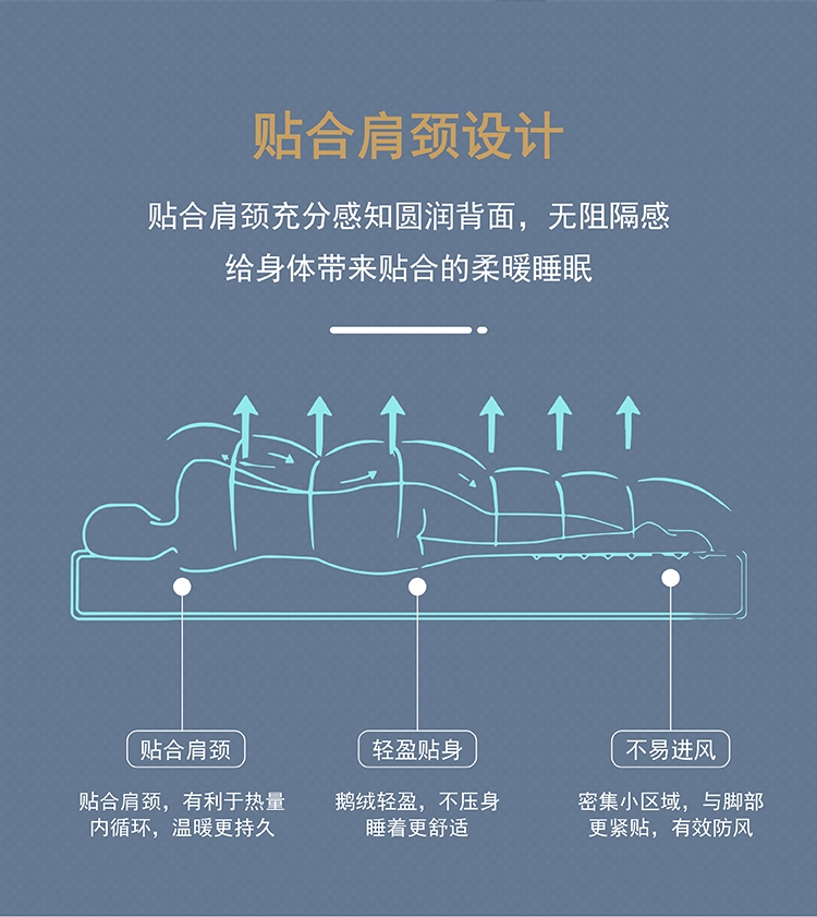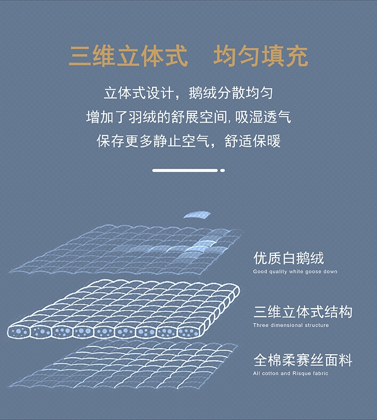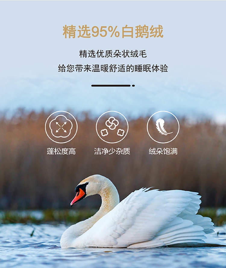选用优质朵状绒毛,给您带来温暖舒适的睡眠体验;三维立衬式设计,鹅绒分散均匀,吸湿透气;选用全新糯棉面料,兼具棉柔质感