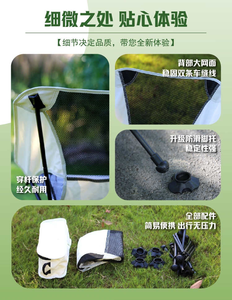 材质:支架:喷涂钢管;坐垫:高密度牛津布