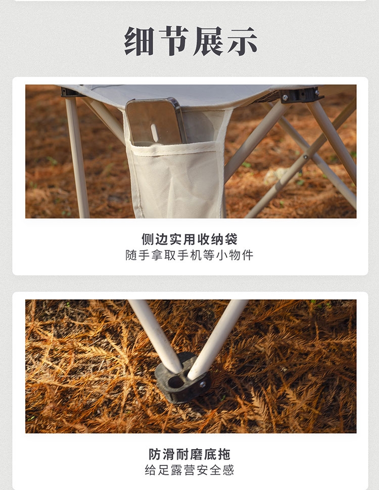 材质:支架:喷涂钢管;坐垫:高密度牛津布