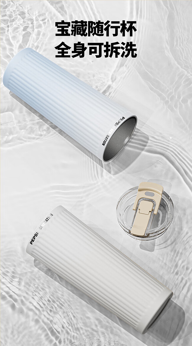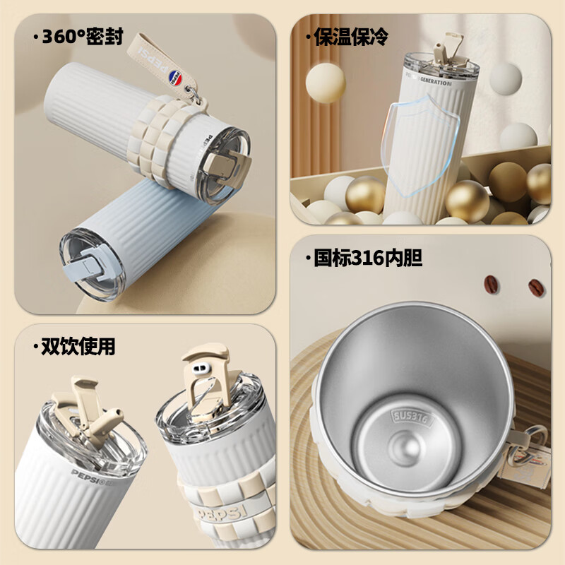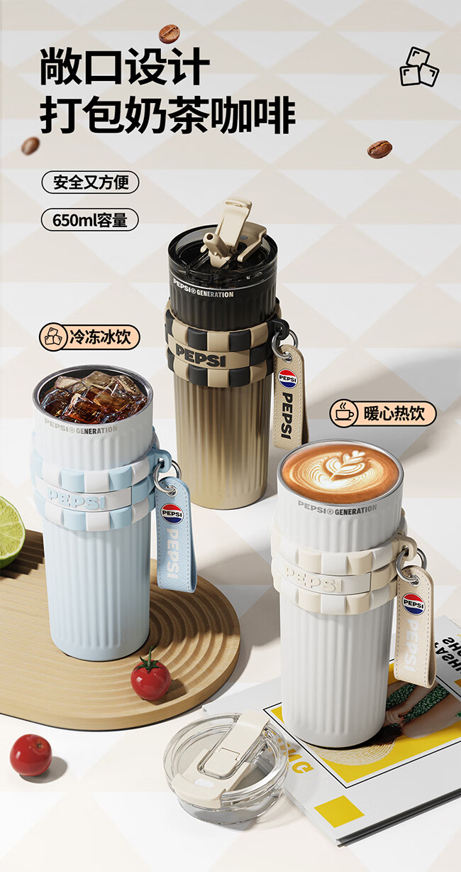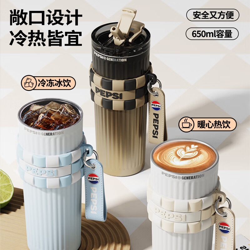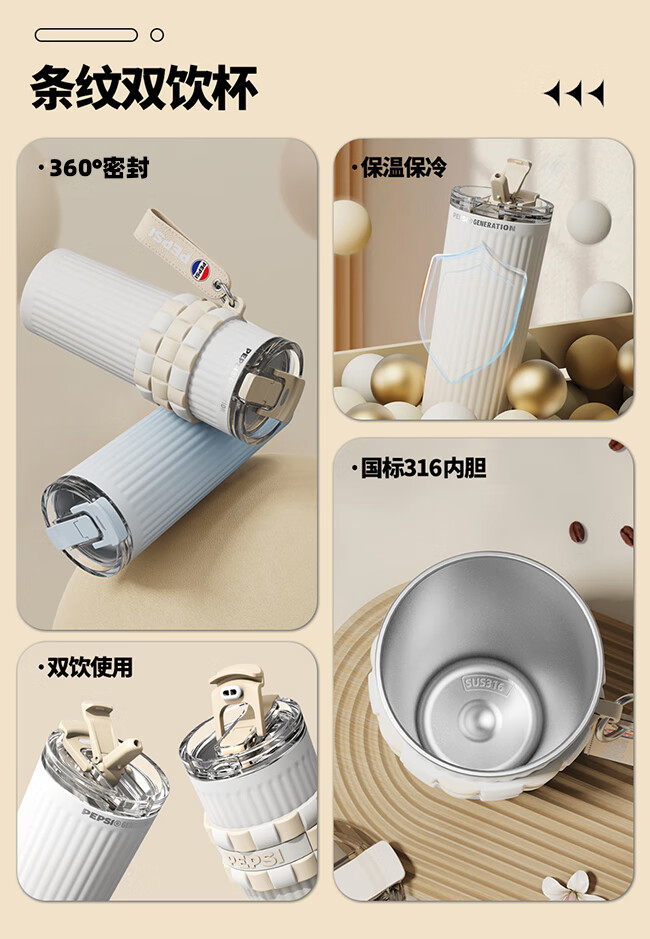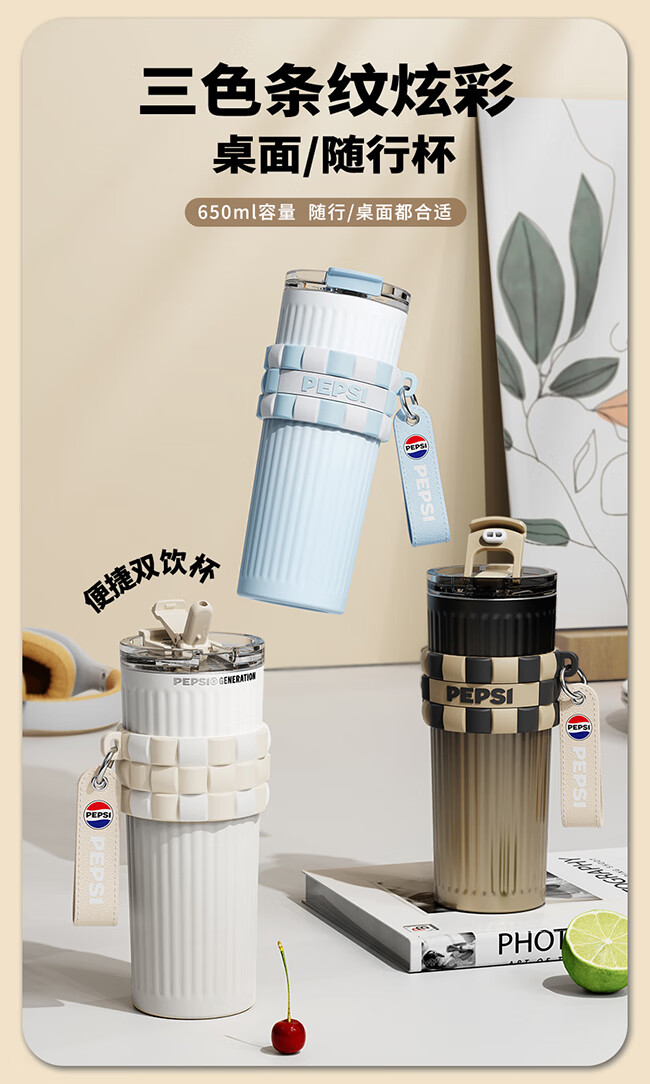 保冷保温双饮杯;650毫升容量;条纹设计