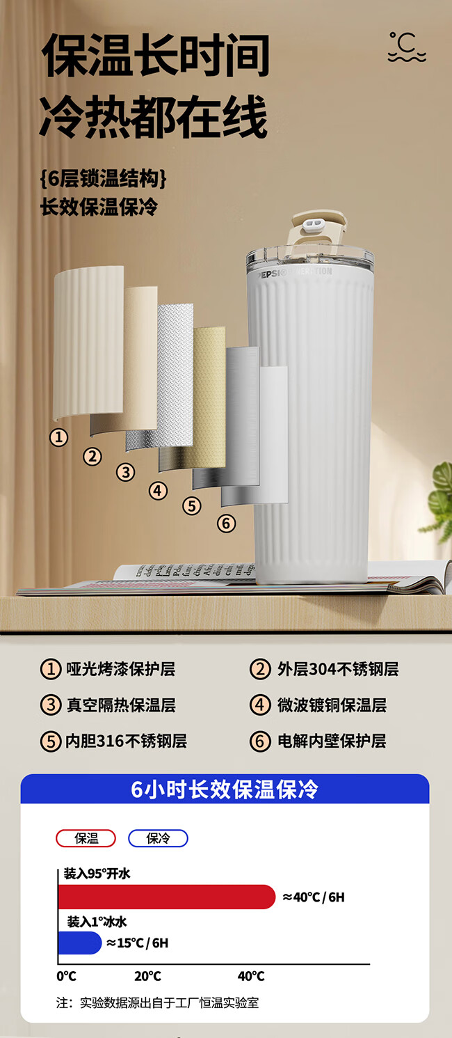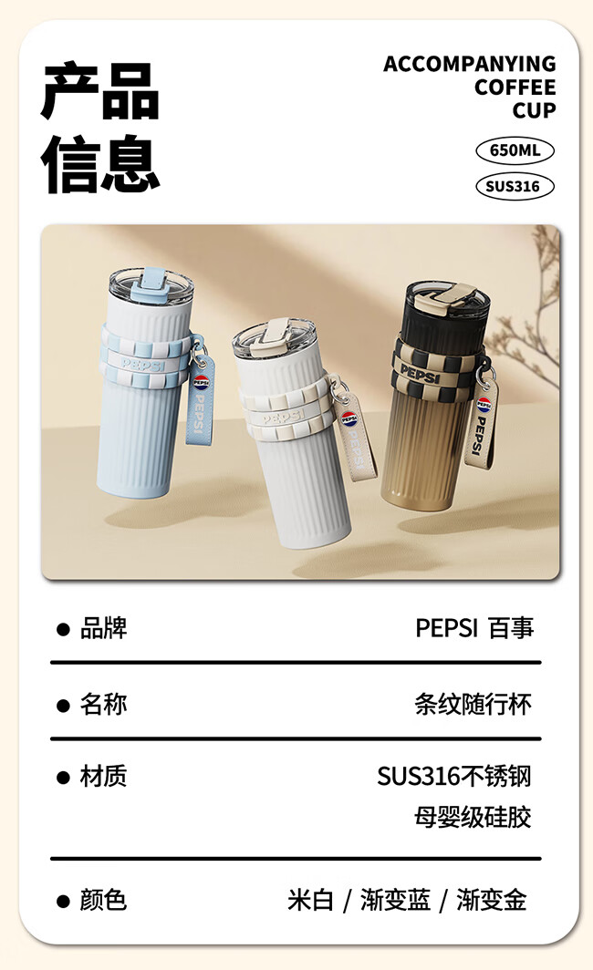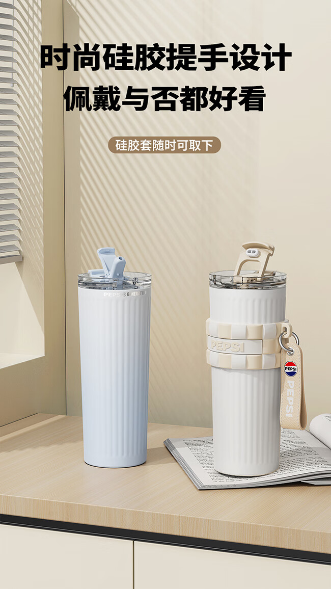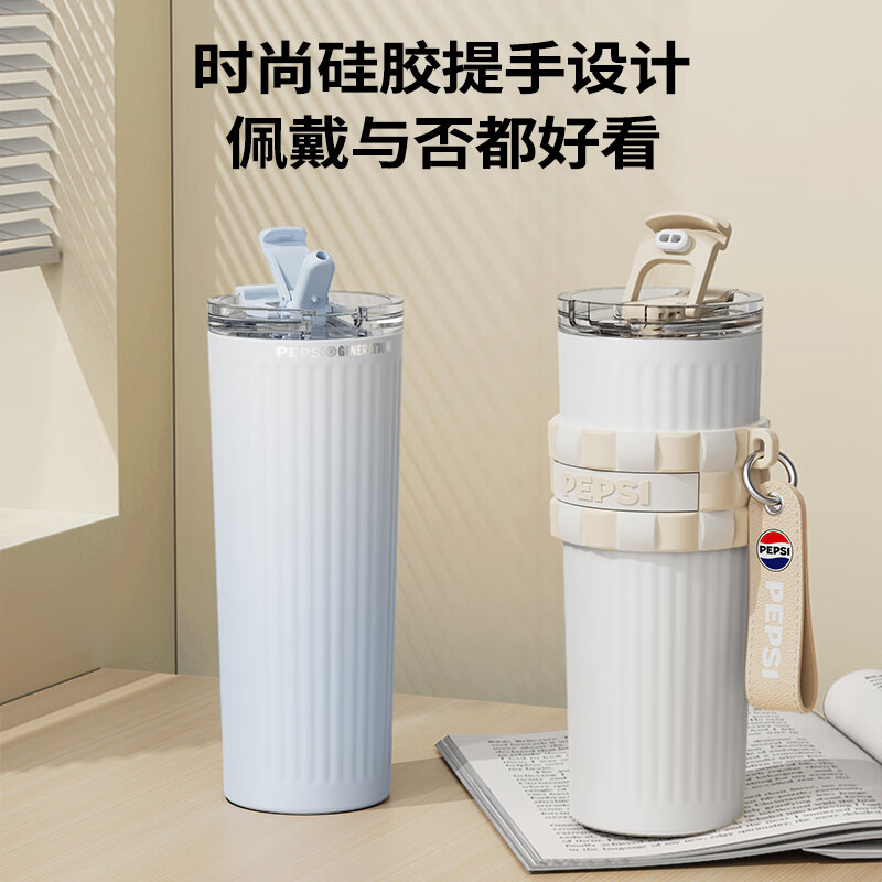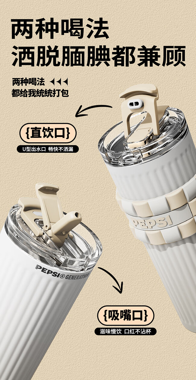 保冷保温双饮杯;650毫升容量;条纹设计