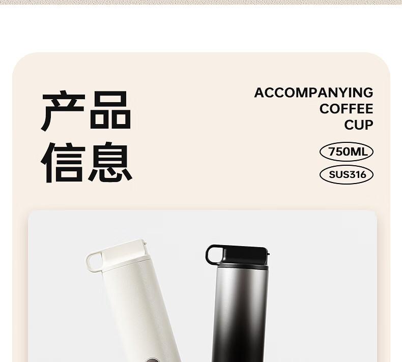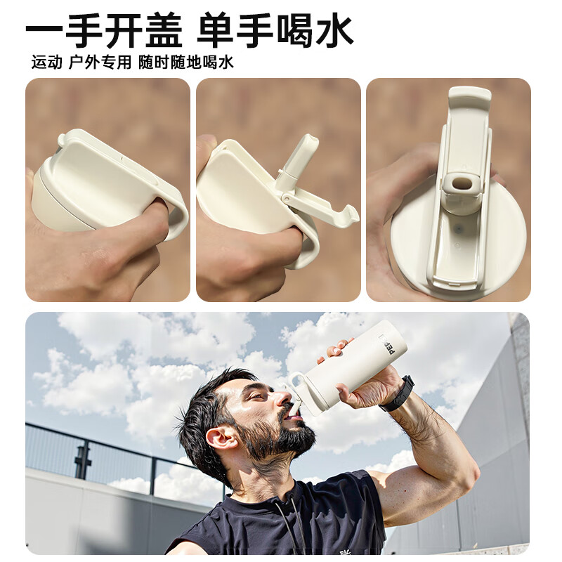 户外运动单手开盖,单手操作更方便;壶身镀铜工艺;750毫升容量