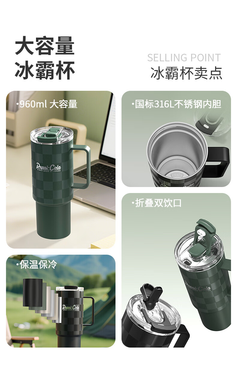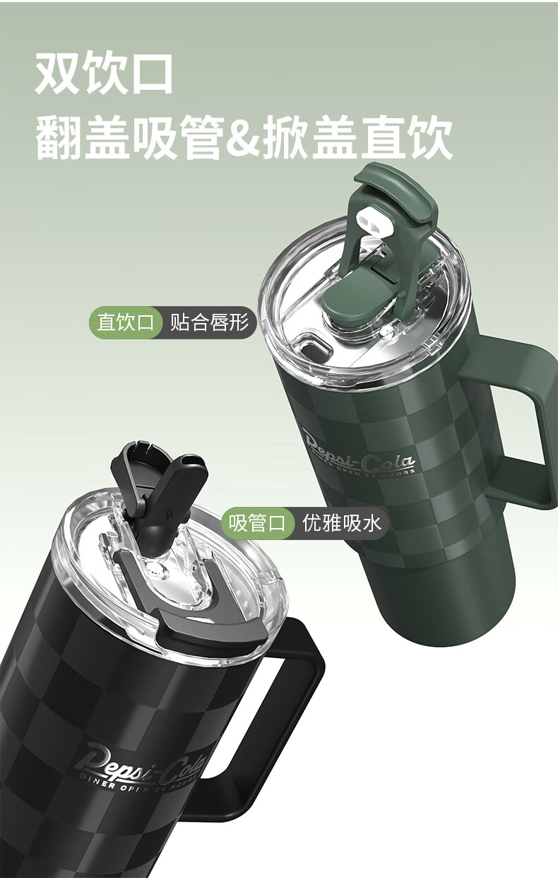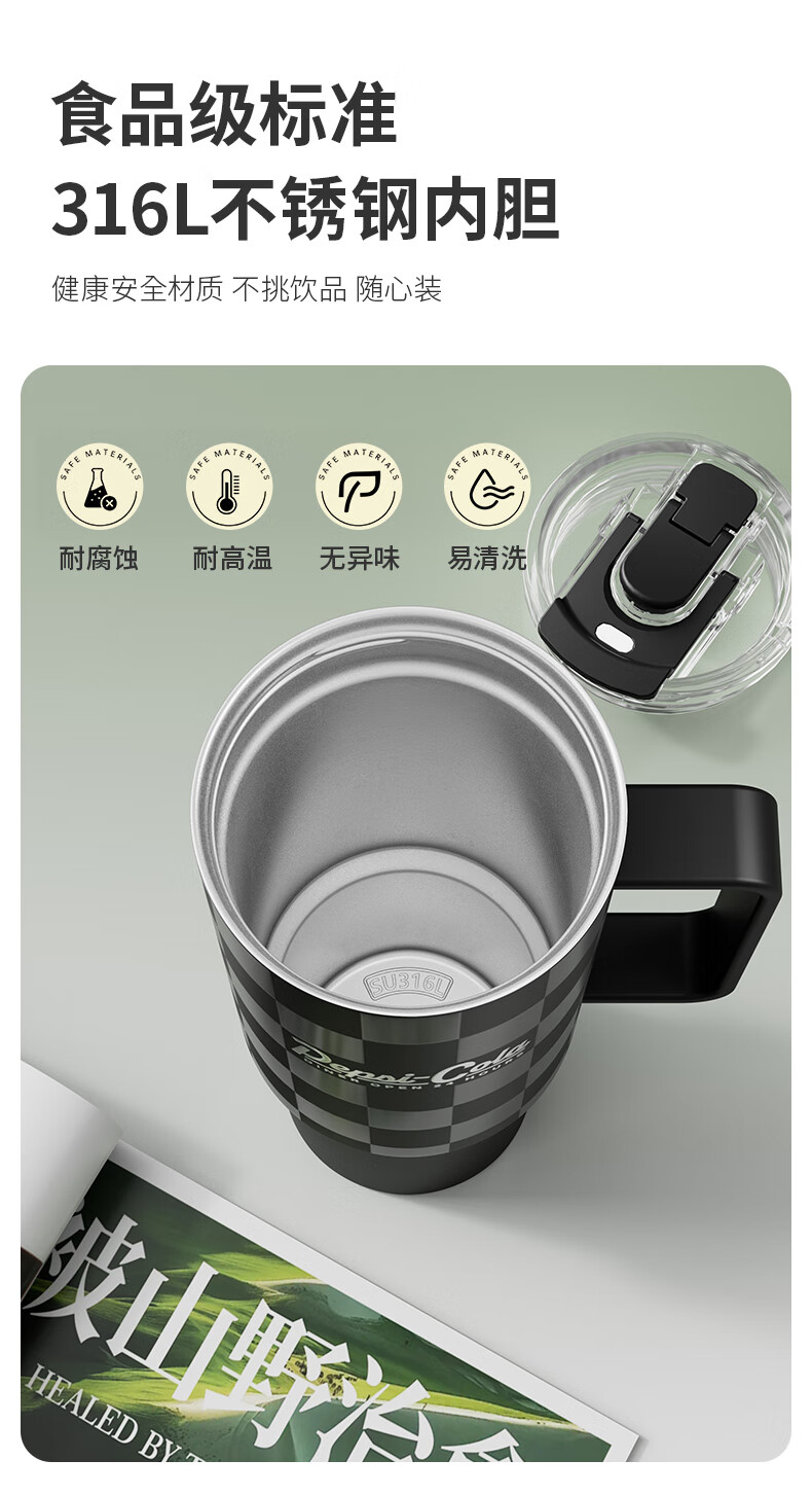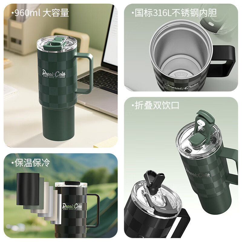 960毫升大容量,无须频繁装水;双饮口,掀盖直饮更方便;内胆316L材质