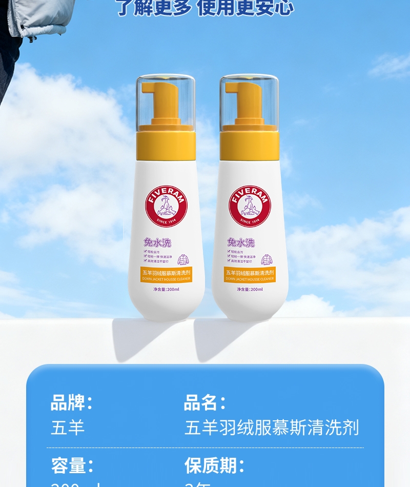 五羊 羽绒服慕斯清洗剂200ml