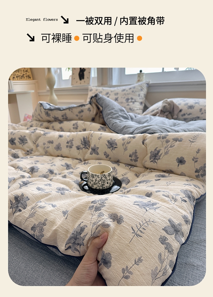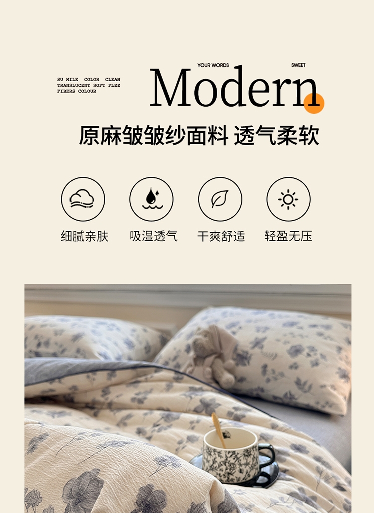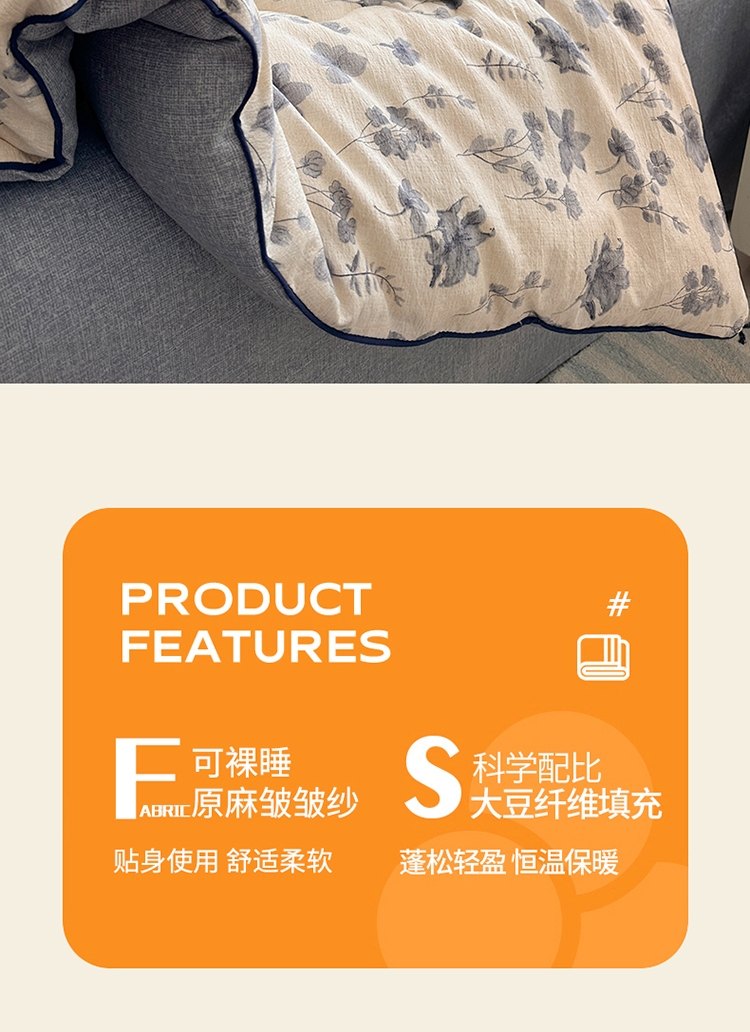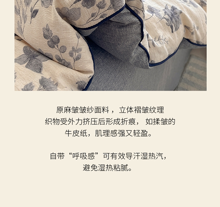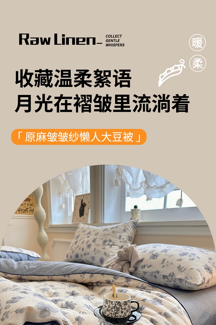 收藏温柔絮语月光在褶皱里流淌着 柔 原麻皱皱纱;可直接使用,亦可绑定被角带搭配作为内芯,;大豆蛋白纤维质地轻盈爽滑,犹如人体的第二肌肤,不易