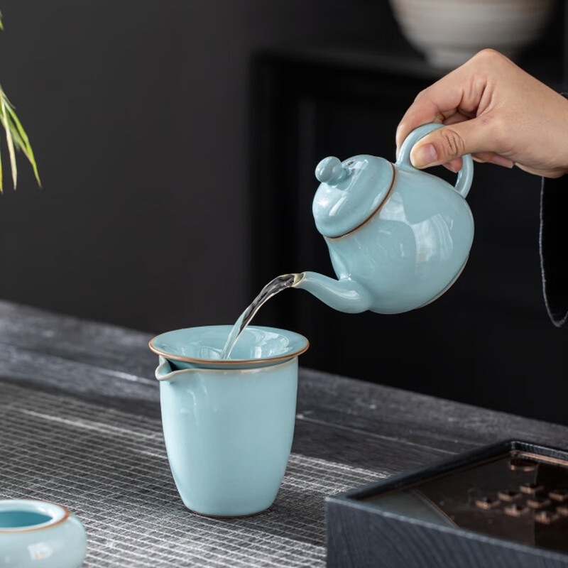 釉色绝:温润似玉,天青釉颜值拉满;工艺绝:手工匠心,开片如诗藏匠艺;配置绝:壶+公道杯+多杯,泡茶宴客都够用;文化绝:千年瓷艺,品茗尽览宋韵底蕴
