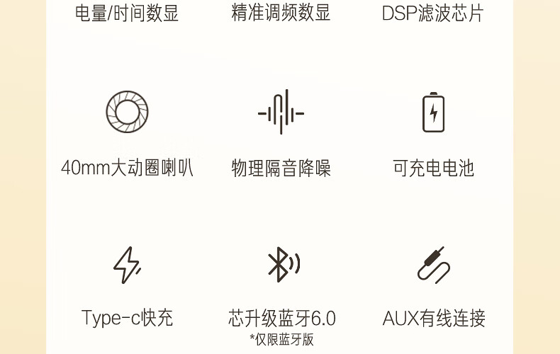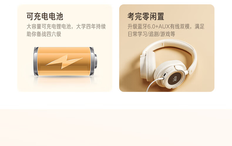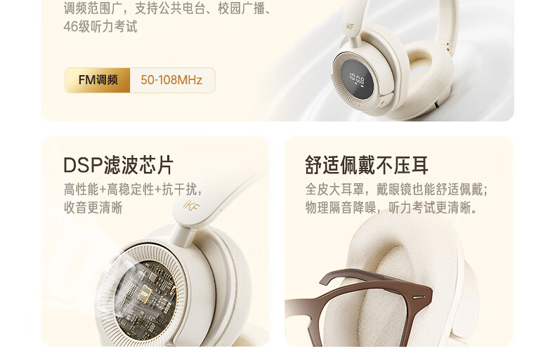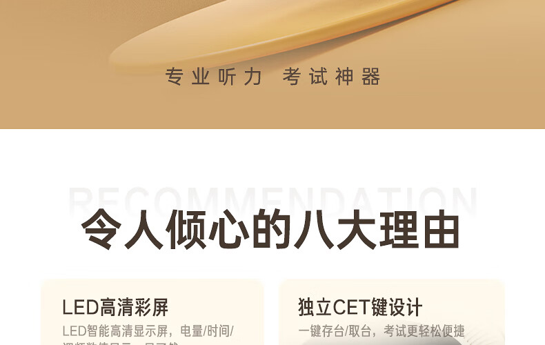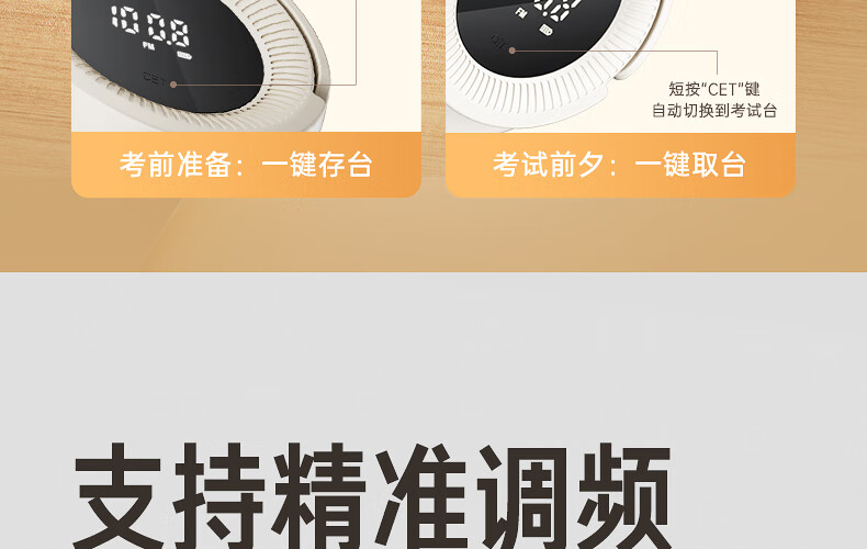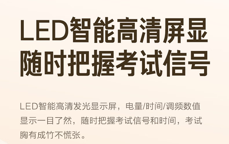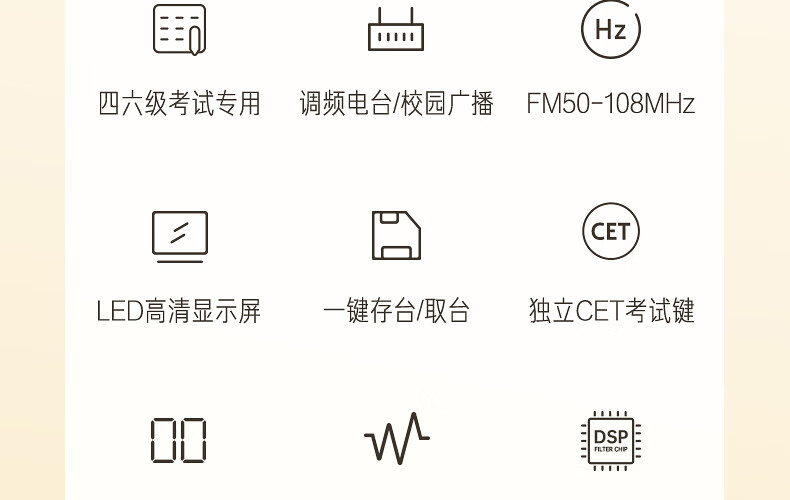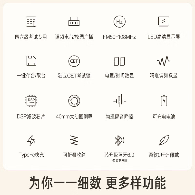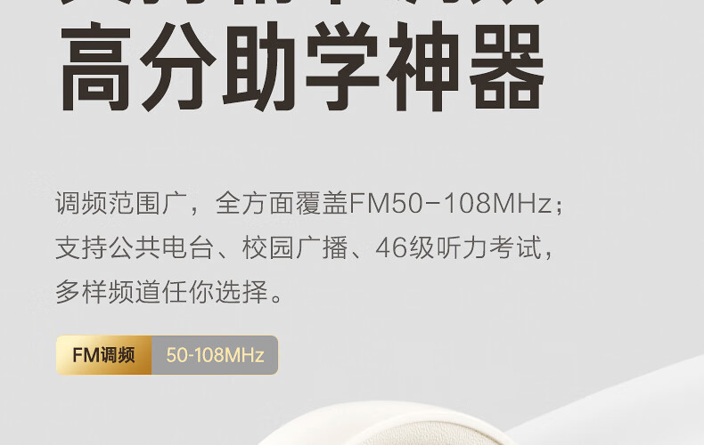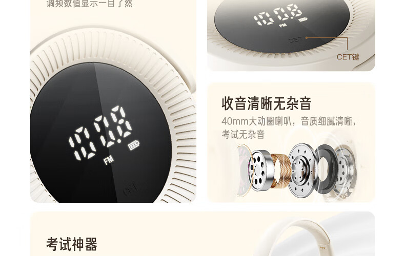 LED高清彩屏,电量/时间/调频一目了然;清晰收音无杂音,40mm大动圈喇叭;考试神器,支持公共电台、校园广播、四六级听力考试