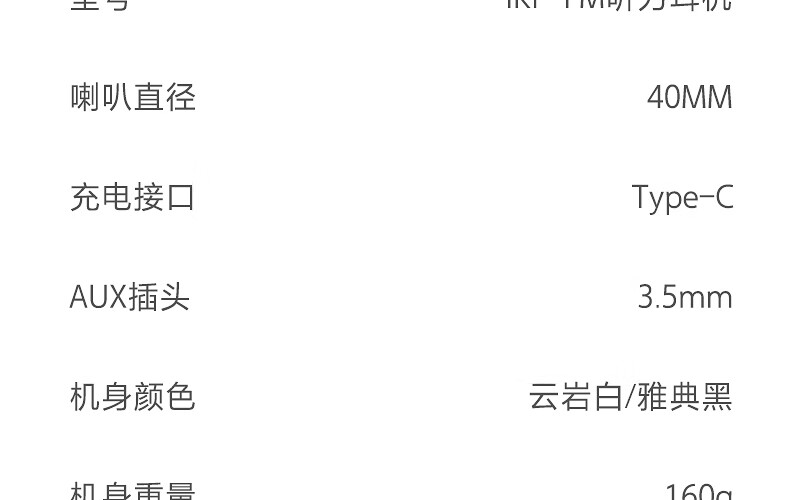 配置清单:耳机*1、说明书*1、AUX音频线*1、typc-c充电线*1