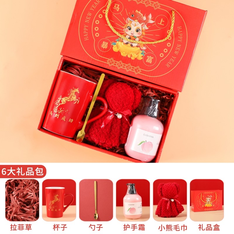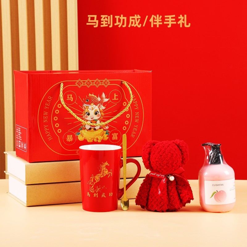 马年陶瓷杯伴手礼红杯暖手,护手霜润肤;一杯一护,暖透整个冬天;一杯热乎+一管护柔,把“冷天里的小温暖”打包送;一杯一护,暖透整个冬天