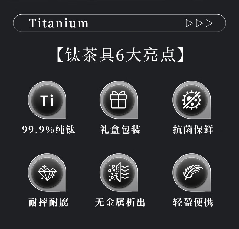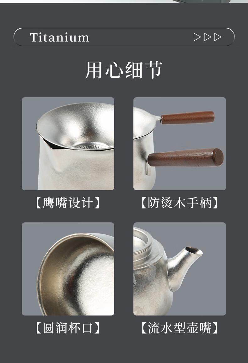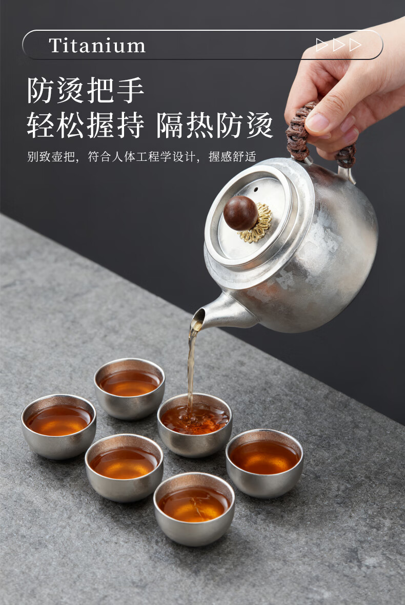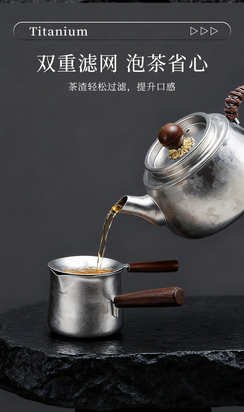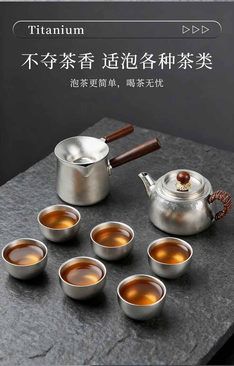 纯钛,不仅是选择一件茶具,更是选择一种生活方式;纯钛极强的耐腐蚀性确保茶具永不生锈、不被侵蚀,历久;钛表面不易滋生细菌,能有效保护茶汤,延长其鲜爽时长;抗菌保鲜,锁住茶韵本香;无涂层脱落之忧,清洗简易,伴您使用一生