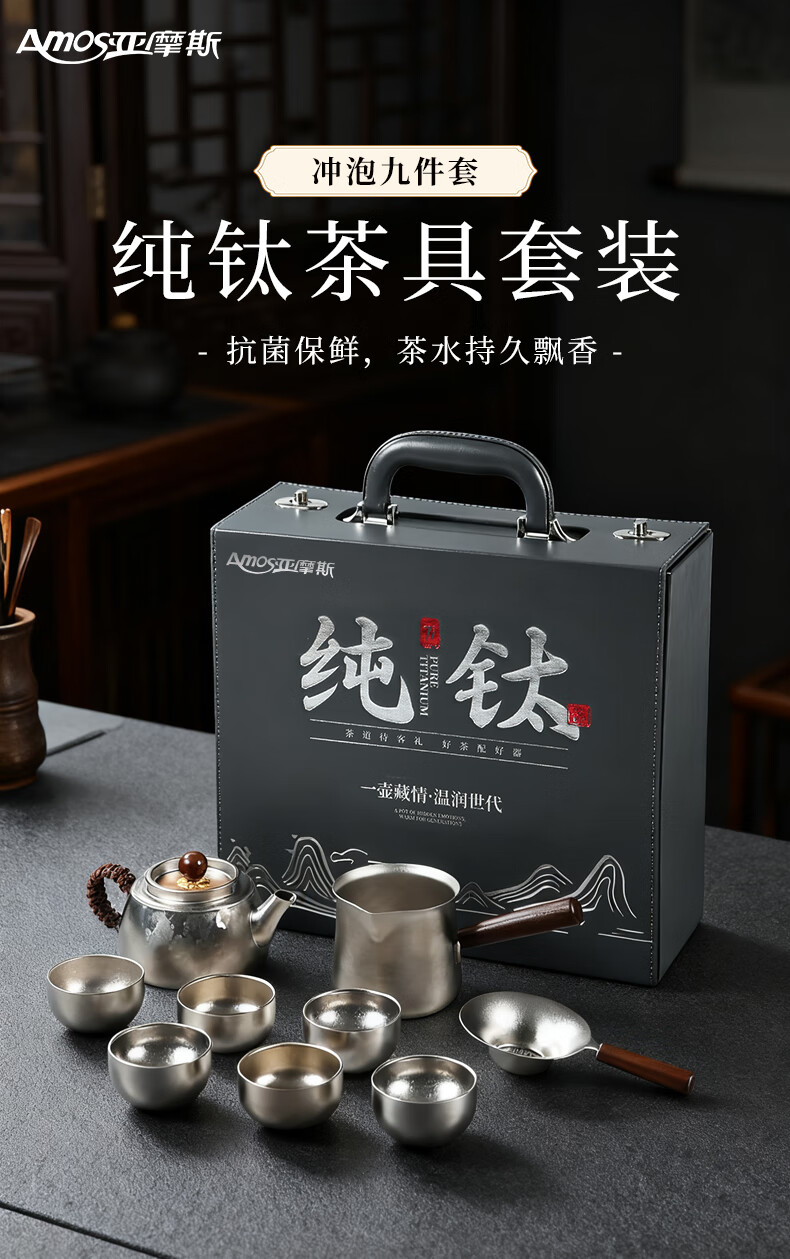 亚摩斯 纯钛茶具套装礼盒装AS-TICH06