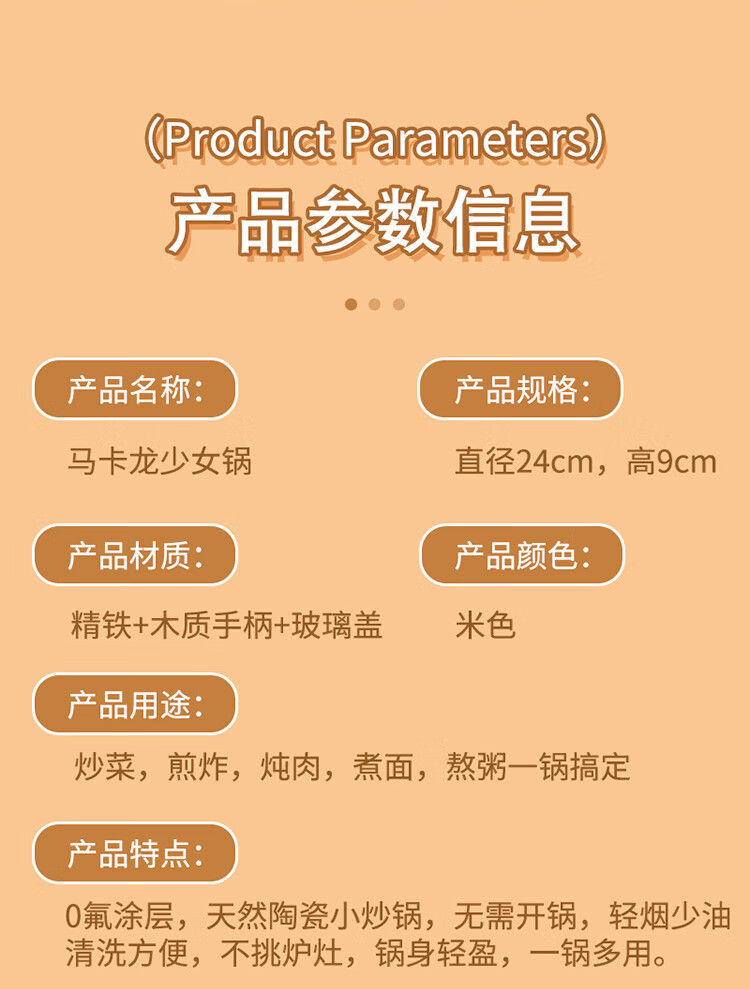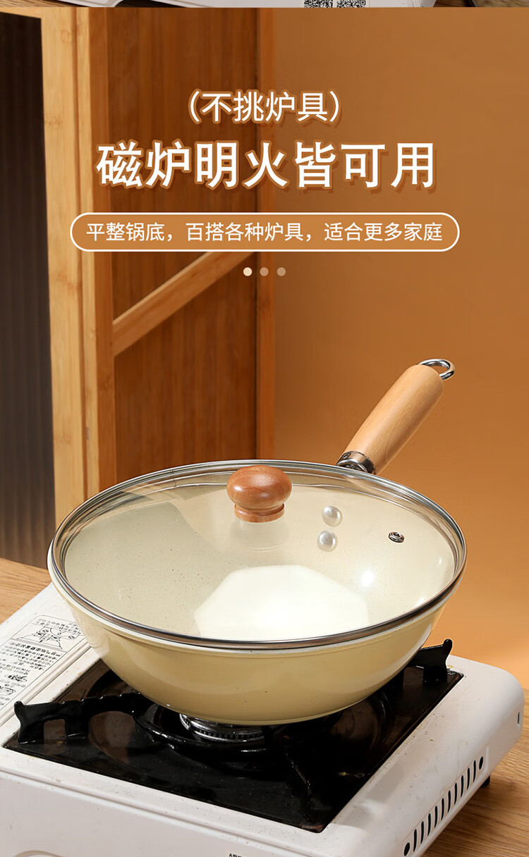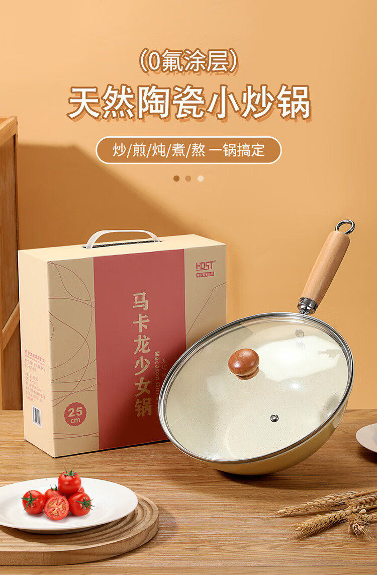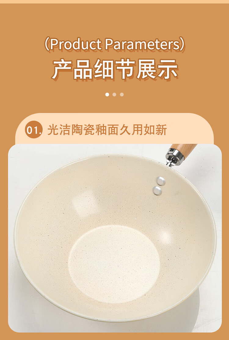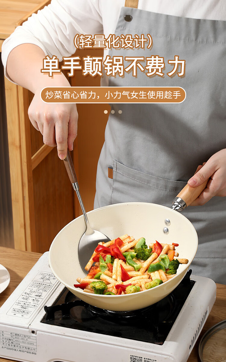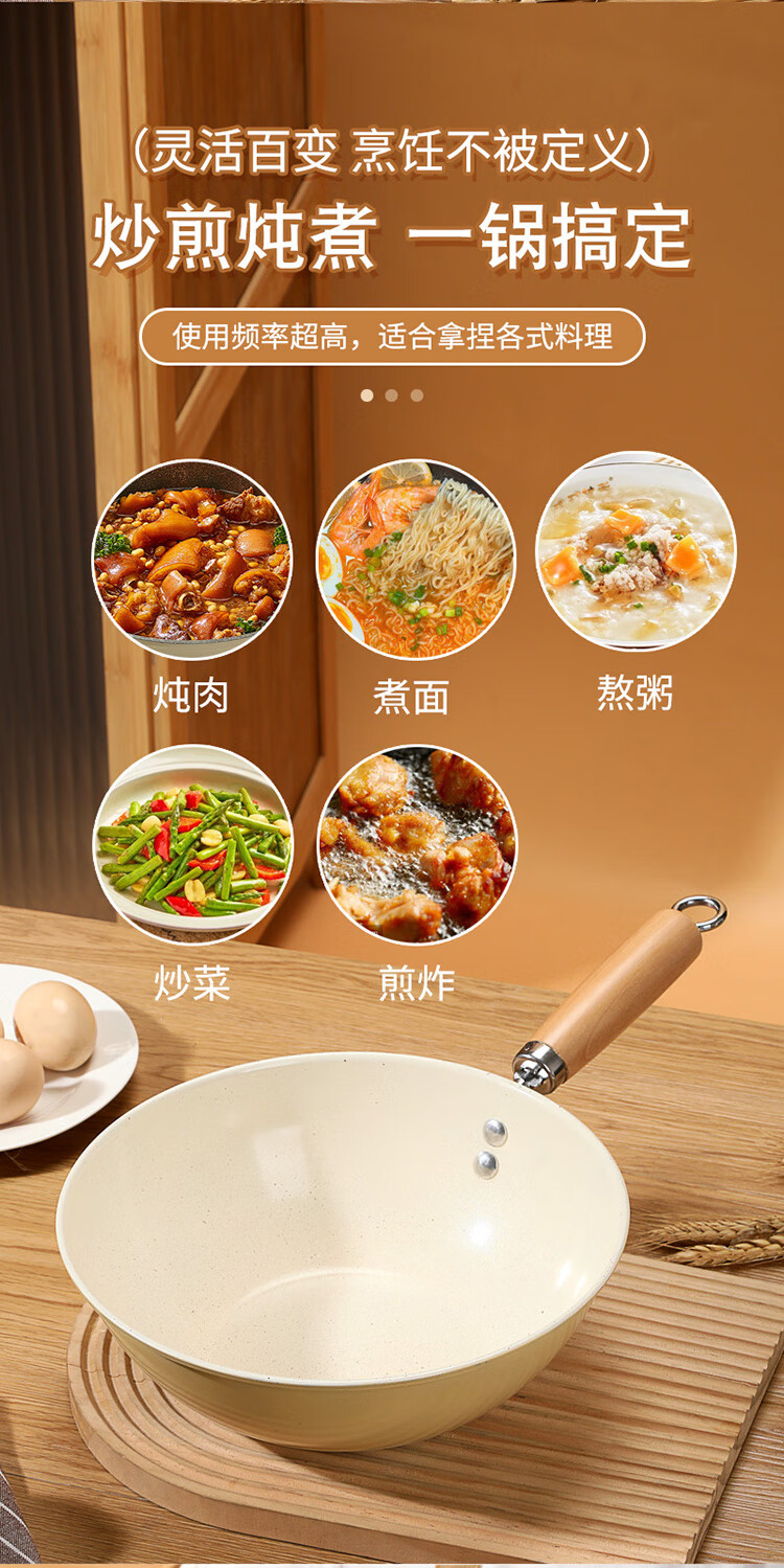 炒菜,煎炸,炖肉,煮面,熬粥一锅搞定;0氟涂层,天然陶瓷小炒锅,无需开锅,轻烟少油;清洗方便,不挑炉灶,锅身轻盈,一锅多用