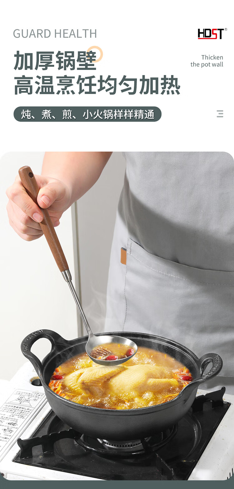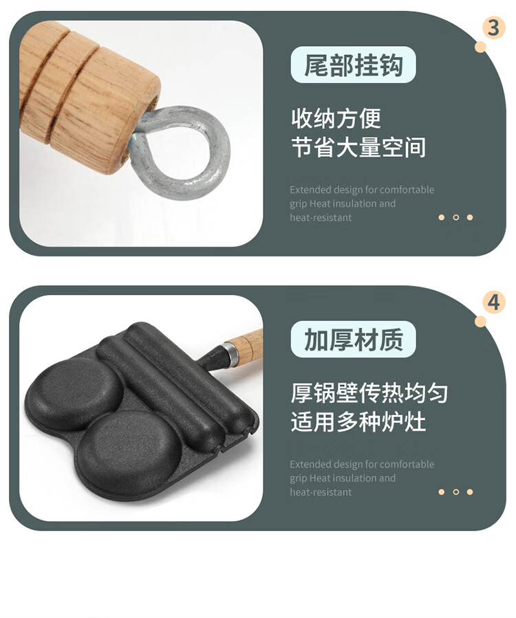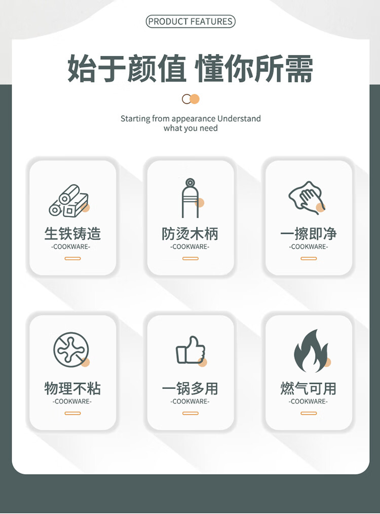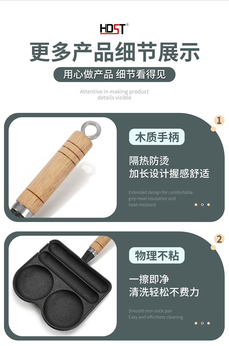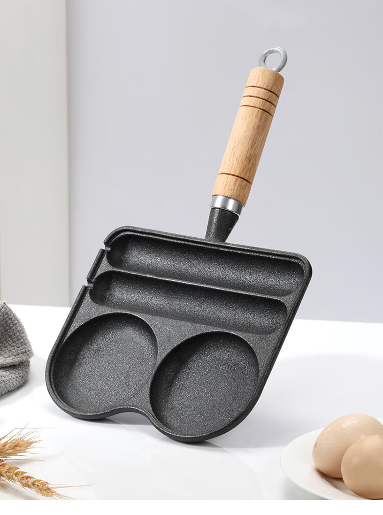 煎蛋,汉堡,蔬菜饼,肉肠。;生铁铸造,物理不粘,无涂层,真安全;厚锅壁,传热均匀,适用电磁炉,电陶炉,燃气灶。