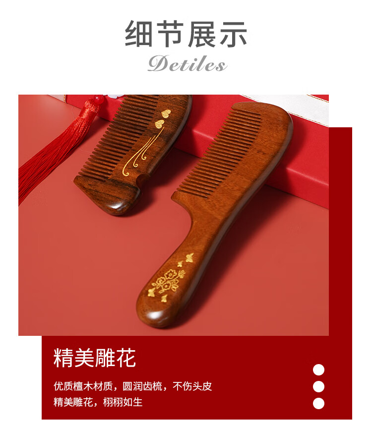 甜蜜点 檀木梳子生日礼物实用年会员工礼W4460