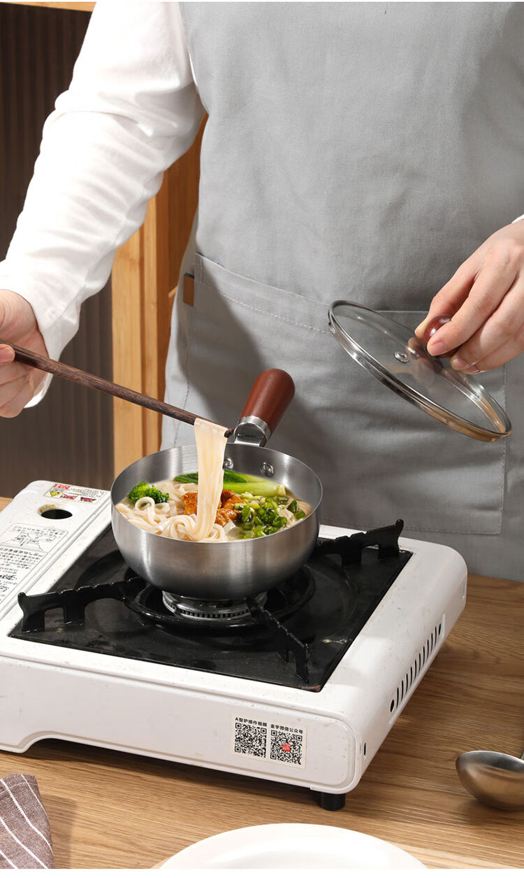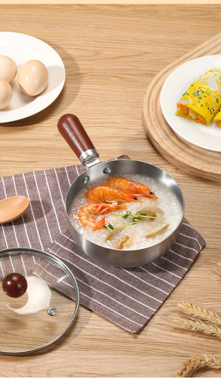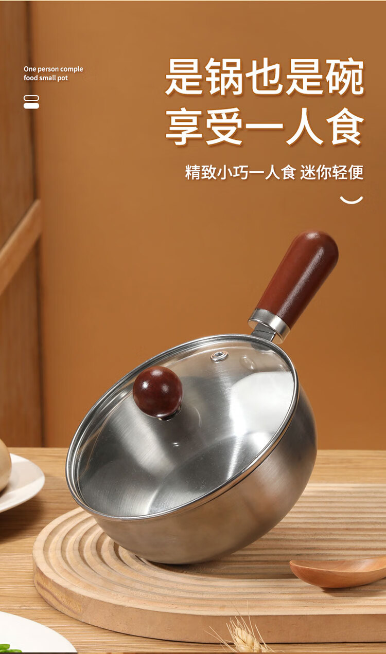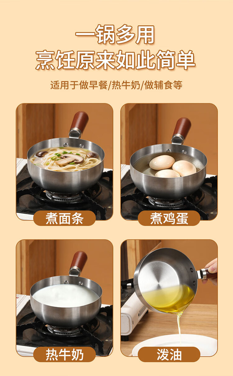 煮鸡蛋,热牛奶,煮面条,泼油;直径14cm,高5.5CM;适用电磁炉,燃气灶,是锅也是碗,餐桌摆拍神器