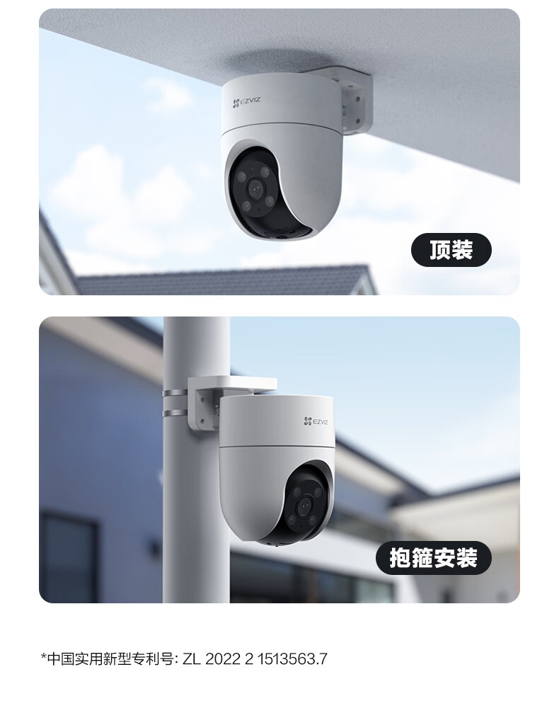 室外360°,双向云台 灵活旋转;500万极清,便捷卡扣安装;四灯夜视 智能全彩;防水防尘 无惧风雨