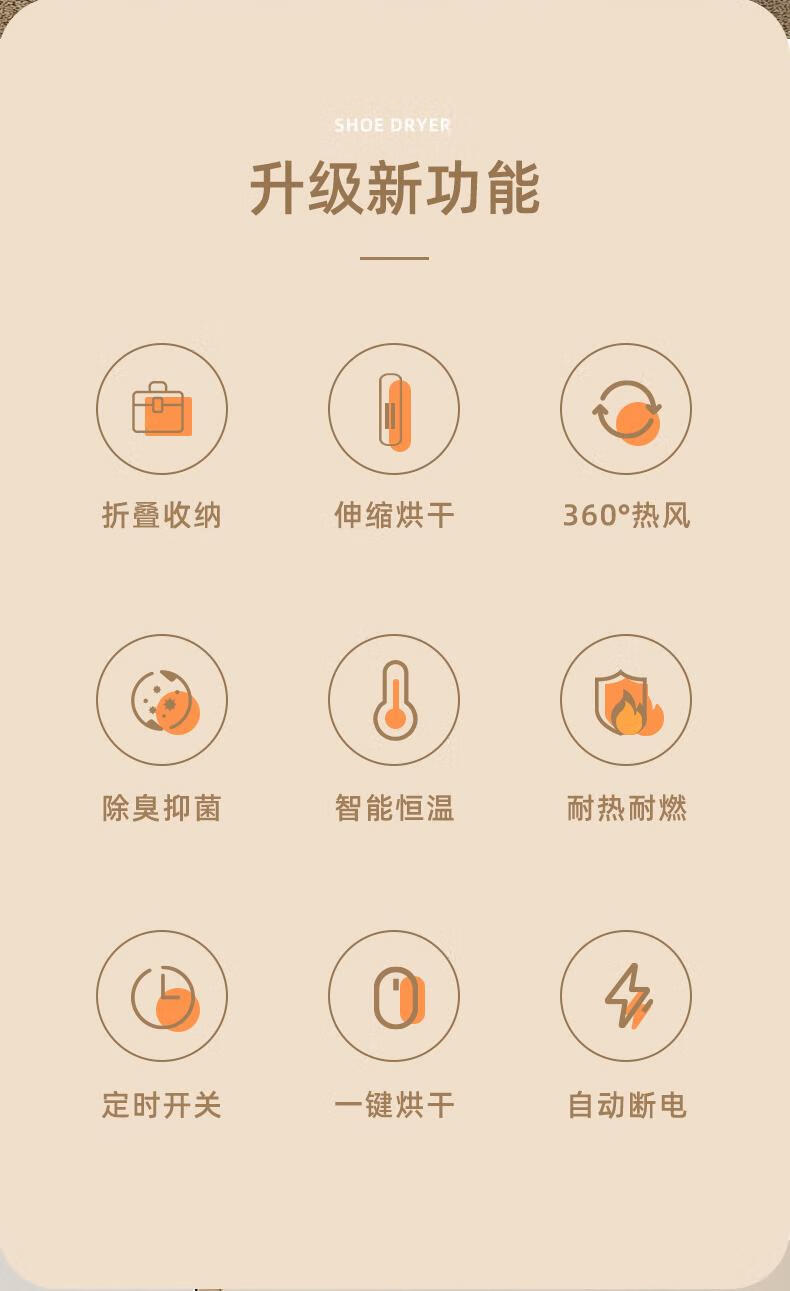 烘鞋魔术师 折叠收纳 伸缩烘干;智能恒温 一键启动 烘干不伤鞋;360°立体热风快速烘干