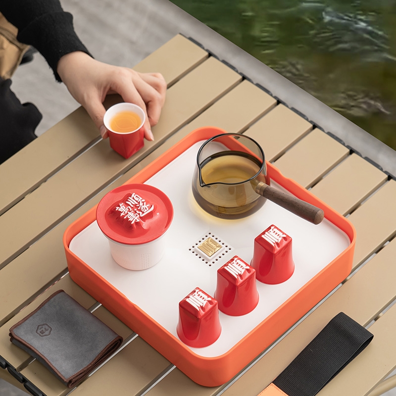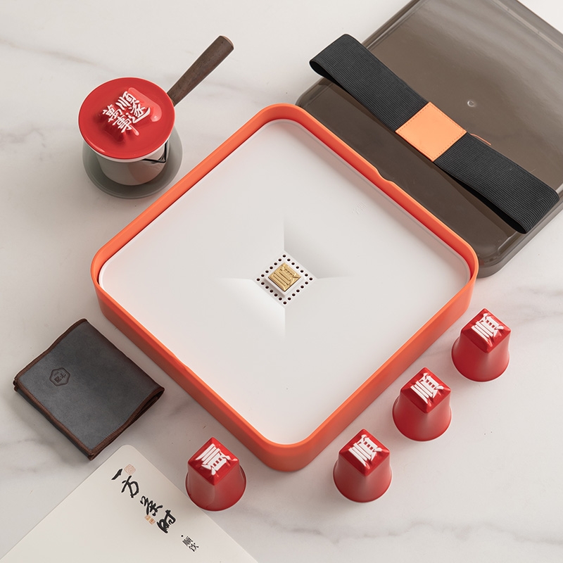 杯底为方,杯口为圆,结合中国传统祝福文字;黑玻璃+实木手柄,高级感拉满,简洁易用;水晶盒包装,既是储水茶盘也是收纳盒