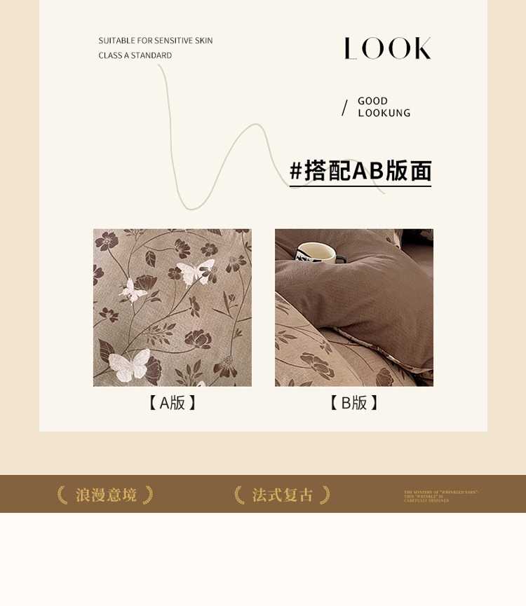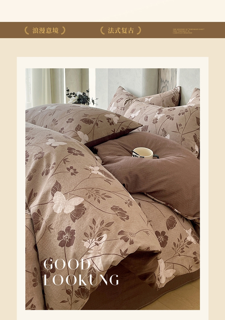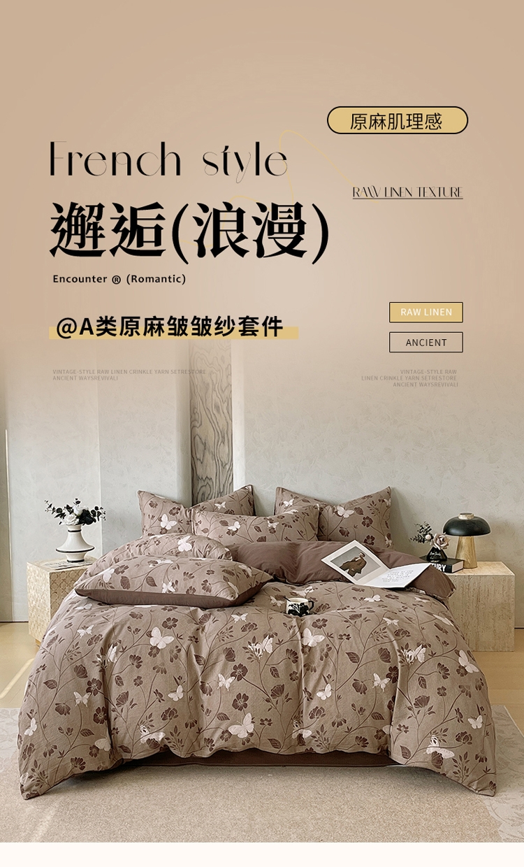 品名:原麻邹邹纱四件套