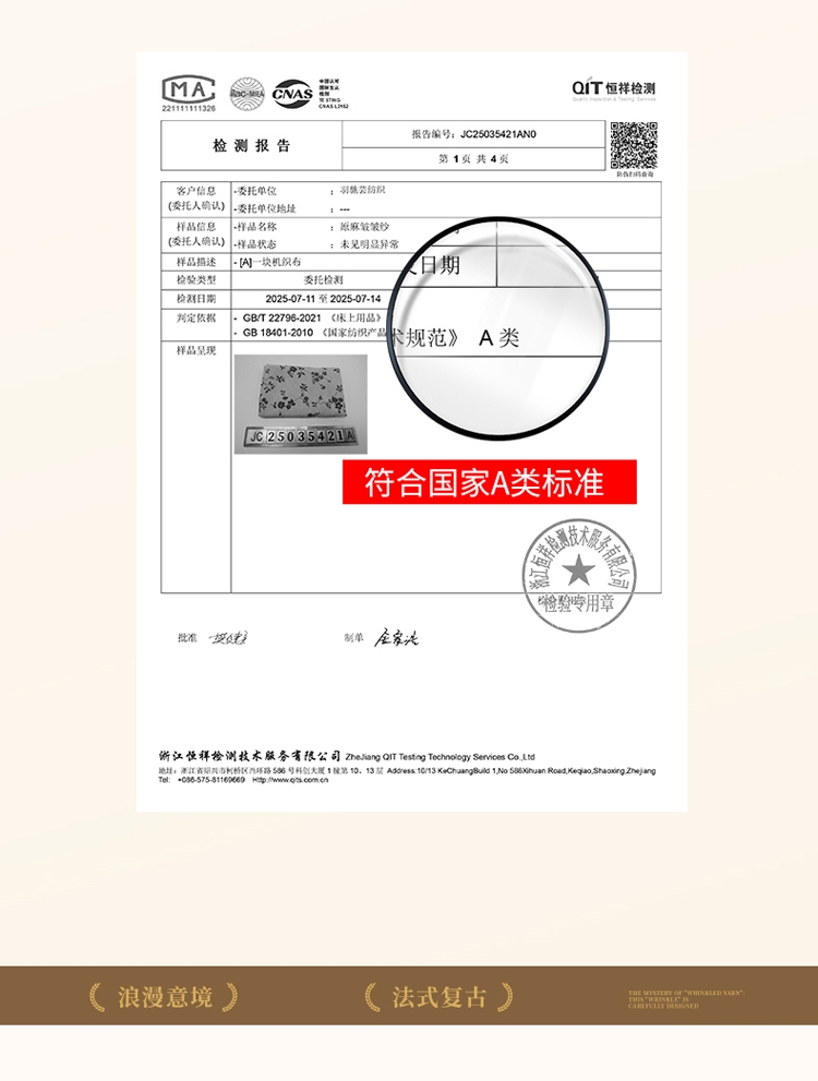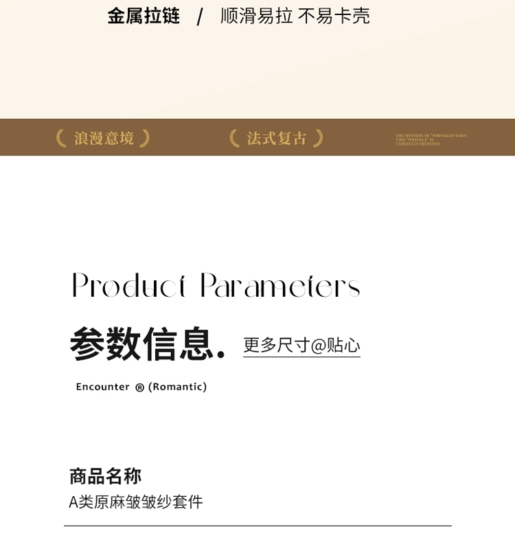 这不是普通的平滑面料,我们通过特殊的压皱、捻皱;纺织工艺,模拟出天然麻织物的自然纹理和质朴手感。 ;细腻柔软自带温柔气质让人沦陷像温柔的月光散发岁月静