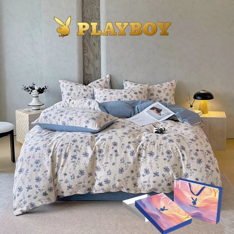 花花公子 仿亚麻双层纱复古加厚四件套PLAYBOY-176