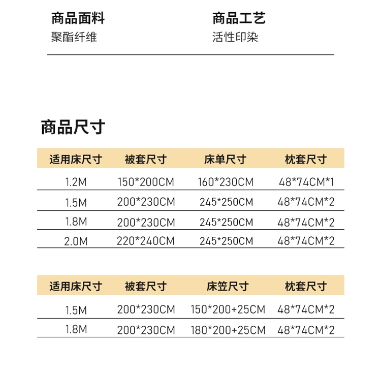 被套:200*230cm*1