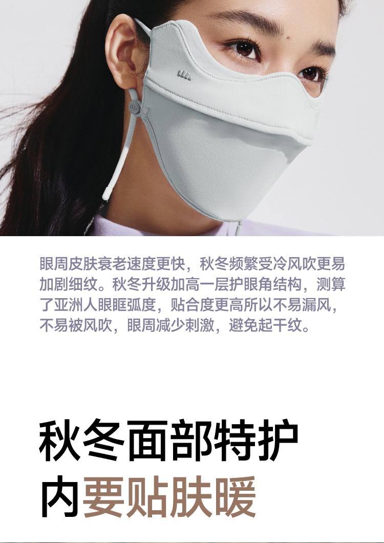 稳固保暖戴法上半身全覆盖保暖固定不松垮;紧密防风戴法 胸口紧密挡风风吹不散;隐形拇指扣设计 单手可控 稳固不易掉