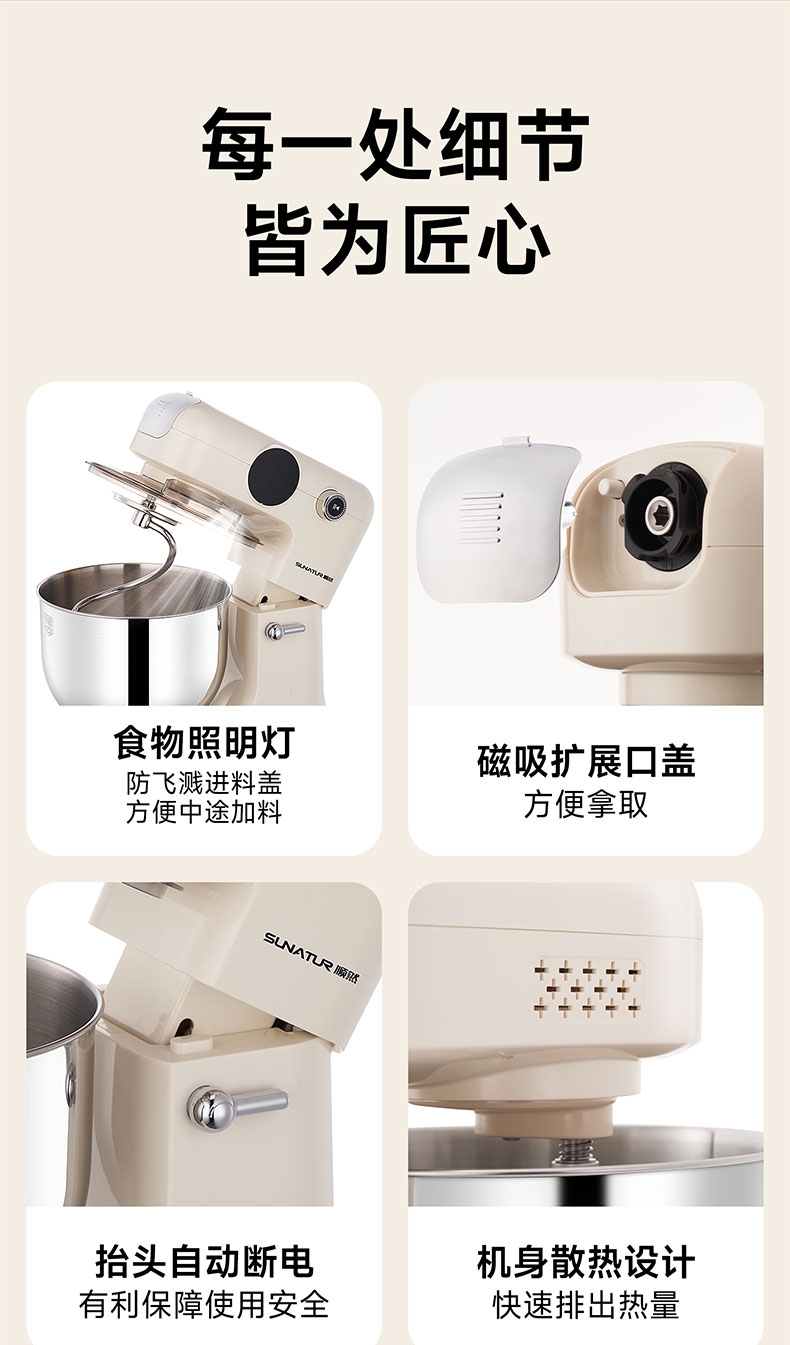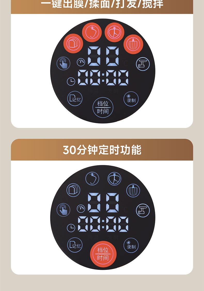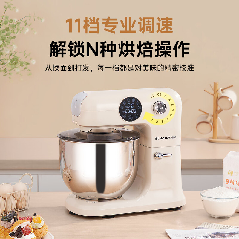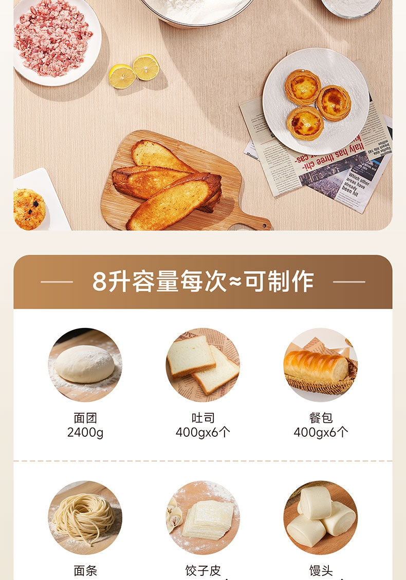 1000w直流电机高效轻音运行,成团快;8升家用大容量 11档精准调速 支持扩展配件需另购;30分钟定时免看管 3大预设功能