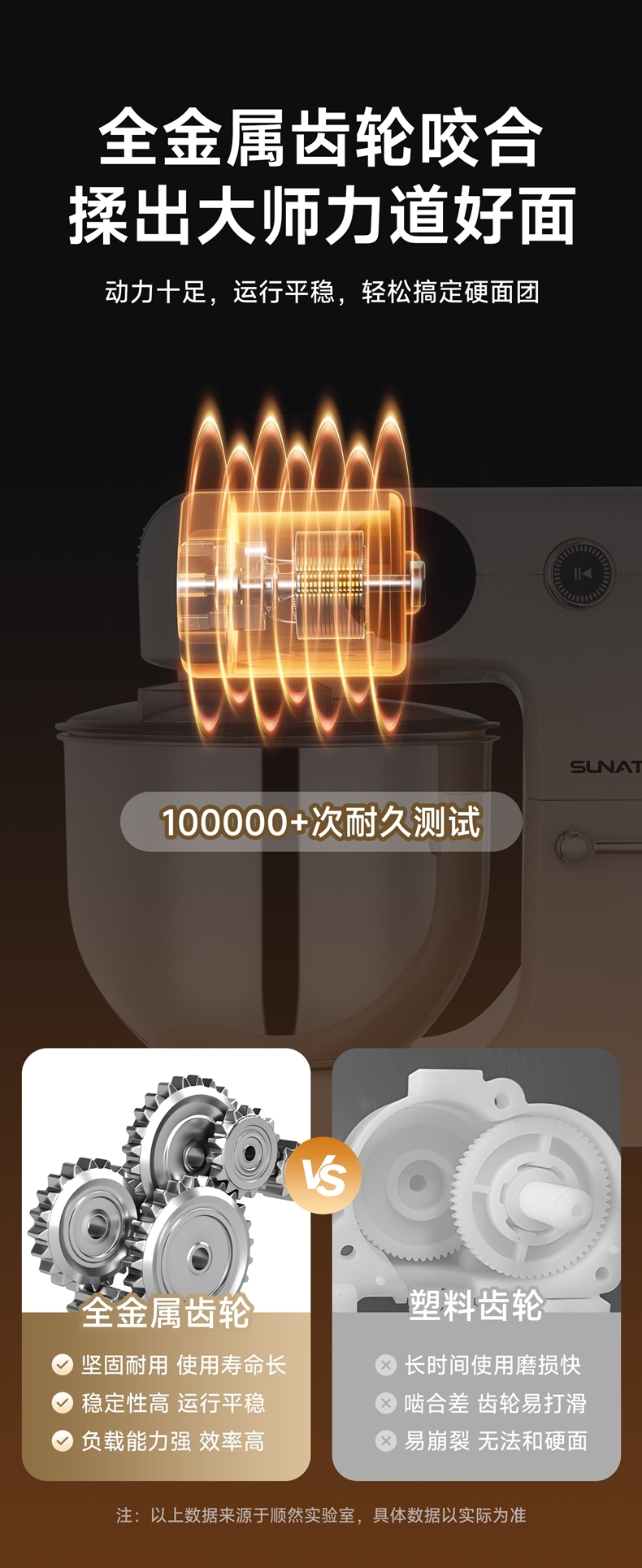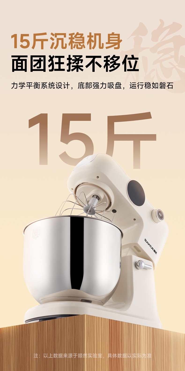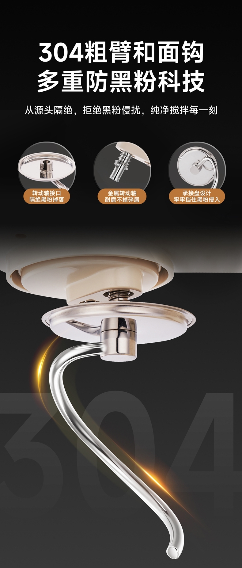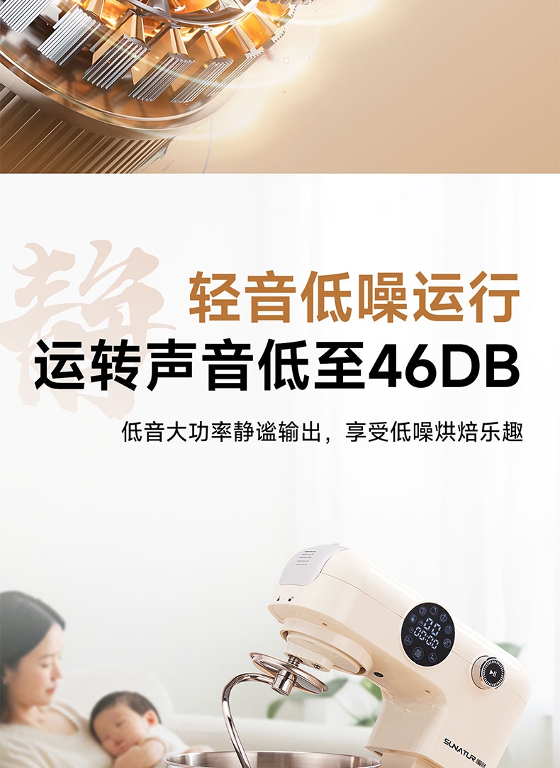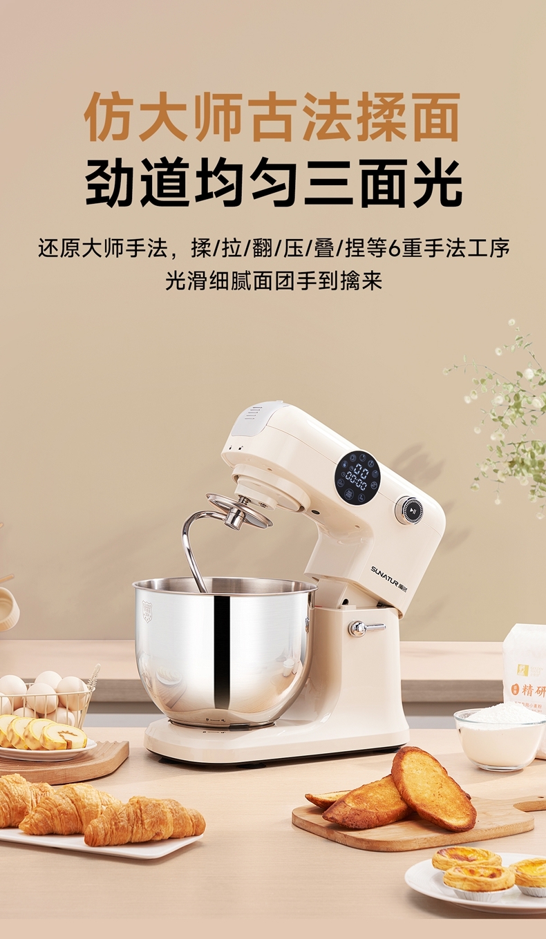配置清单:1000w直流电机高效轻音运行,成团快,轻松出手套膜 8升家用大容量 11档精准调速,满足不同需求,30分钟定时免看管 3大预设功能,304和面钩,304打蛋笼,搅拌桨配件 金属传动齿轮,高强度高精度使用寿命长 触控屏+旋钮交叉控制 支持扩展配件,需另购;