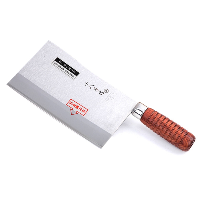 3层复合钢,两侧低碳不锈钢,易复磨 、良好韧性;复合不锈钢,中间夹层80Cr13,高硬度、高耐磨性;刀头加宽设计,让厨师处理较大食材时,具有防震效果
