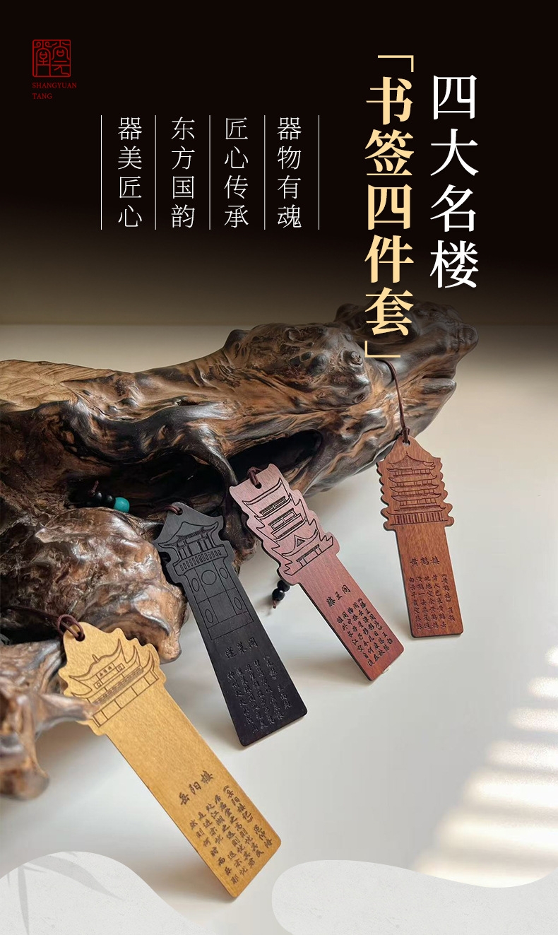 尚元堂 中式复古四大名楼名木书签四件套