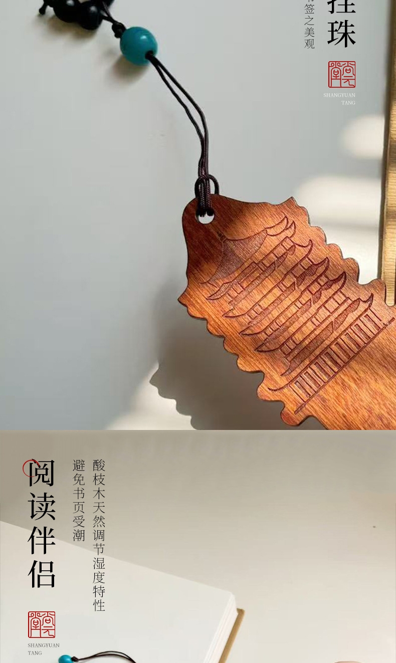 中国风复古书签;名木材质,精工雕刻;可定制logo