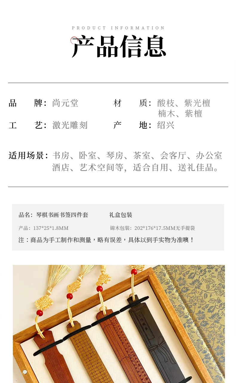 尚元堂 中国风琴棋书画木质书签锦盒包装