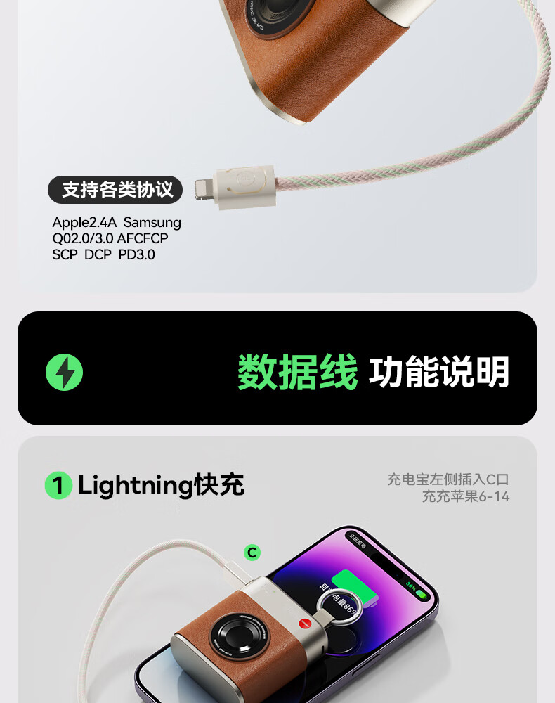 向物 充电宝小巧便携自带线DSHJ-S-2504