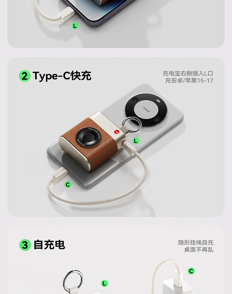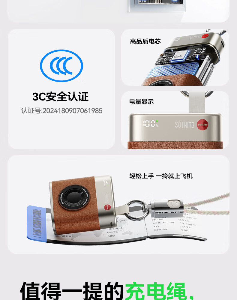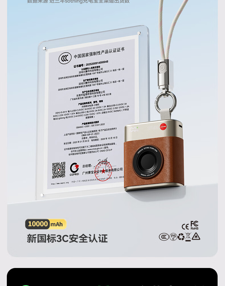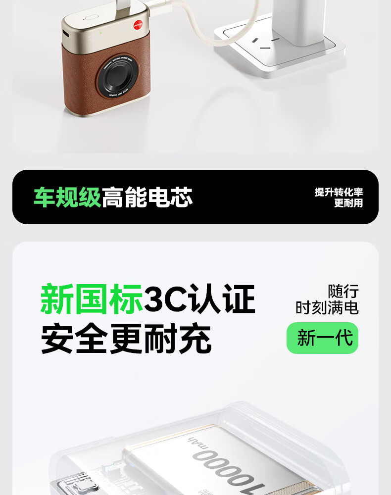 10000mAh大容量续航不断电;小巧便携,满足日常出行;出差上飞机等不同需求 3口充电