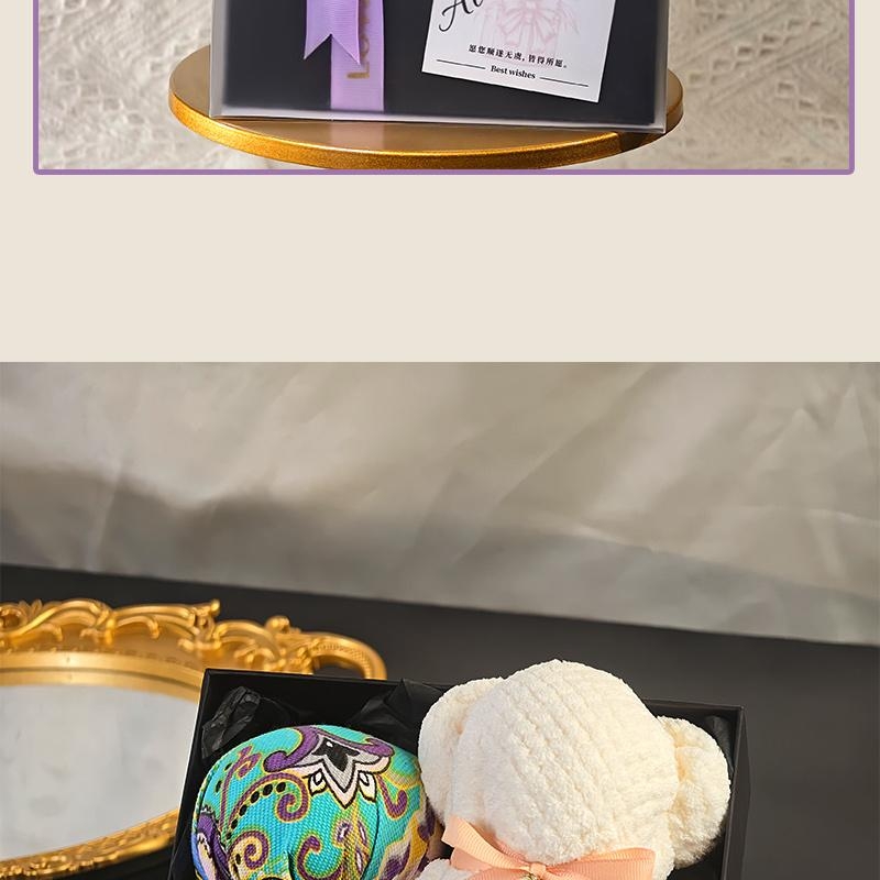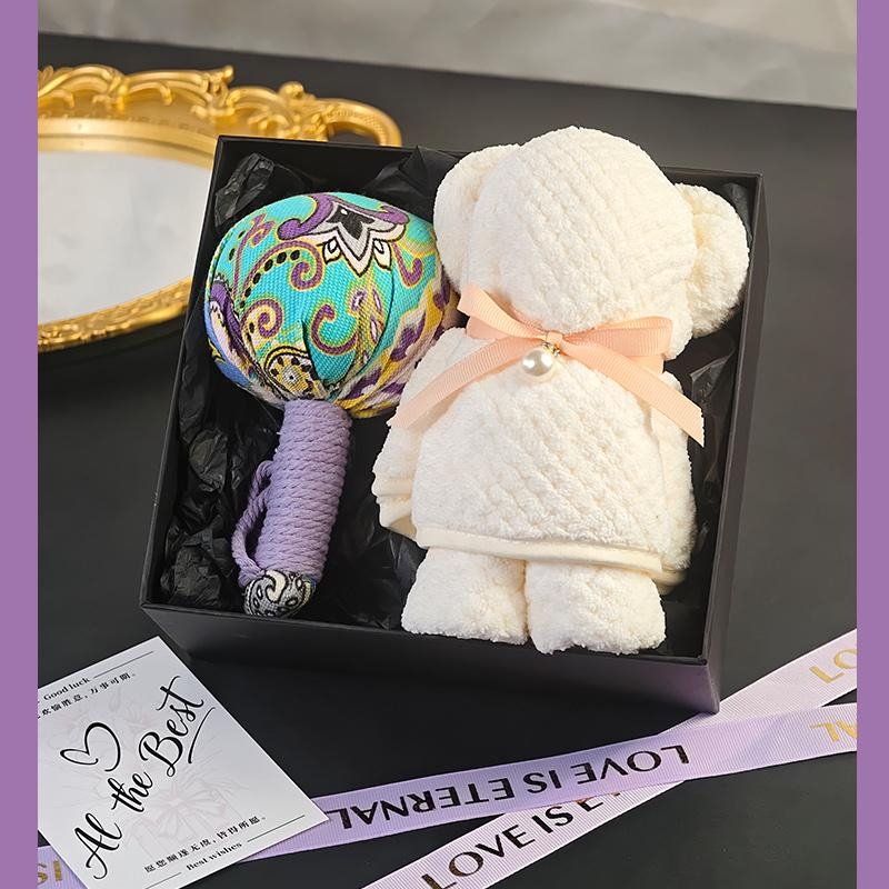 组合:艾草养生锤、大毛巾熊75*34cm、紫色蝴蝶绑带礼盒+贺卡